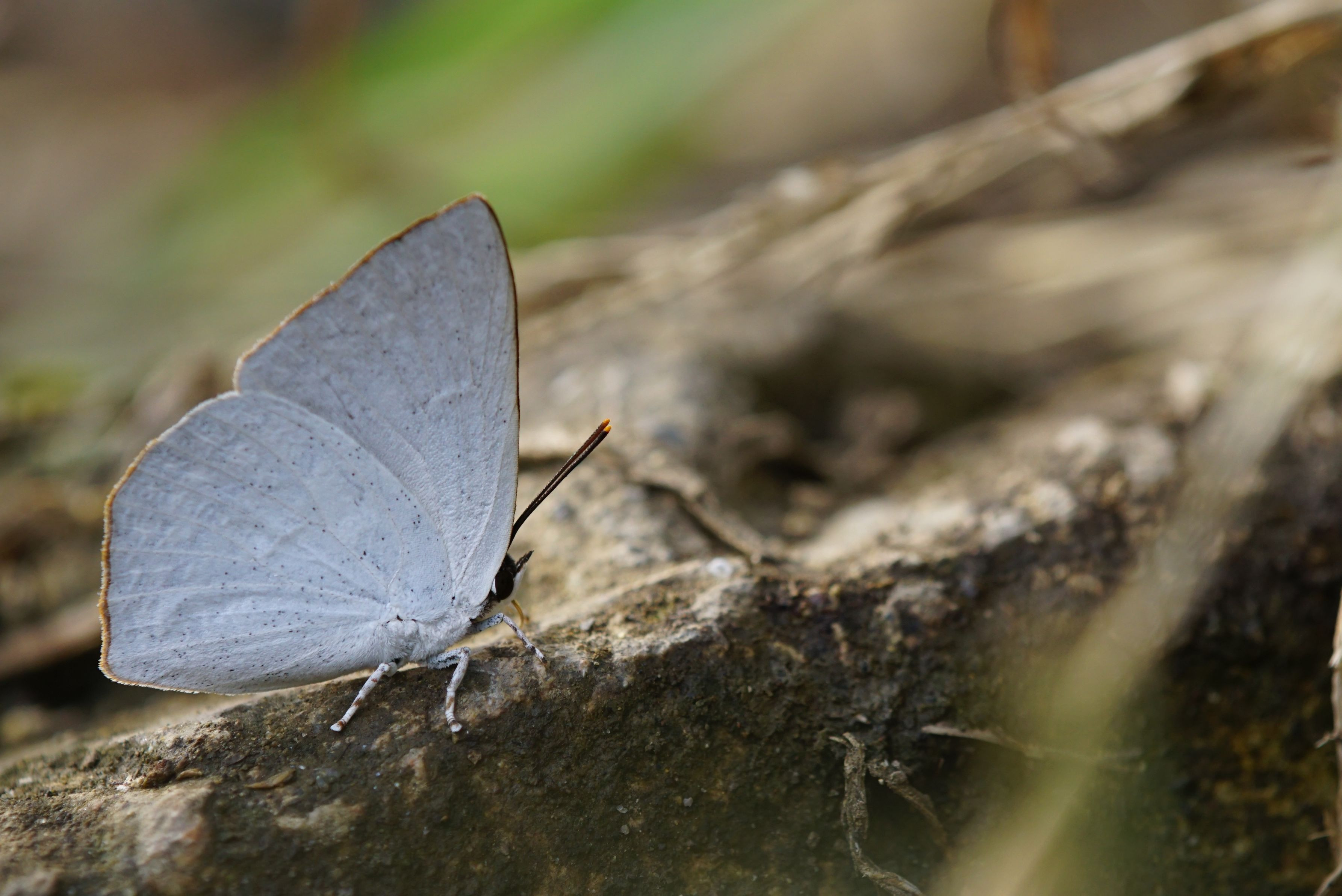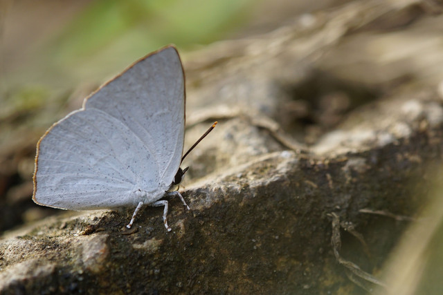 秋を迎えた林道で吸水中のウラギンシジミ♂。