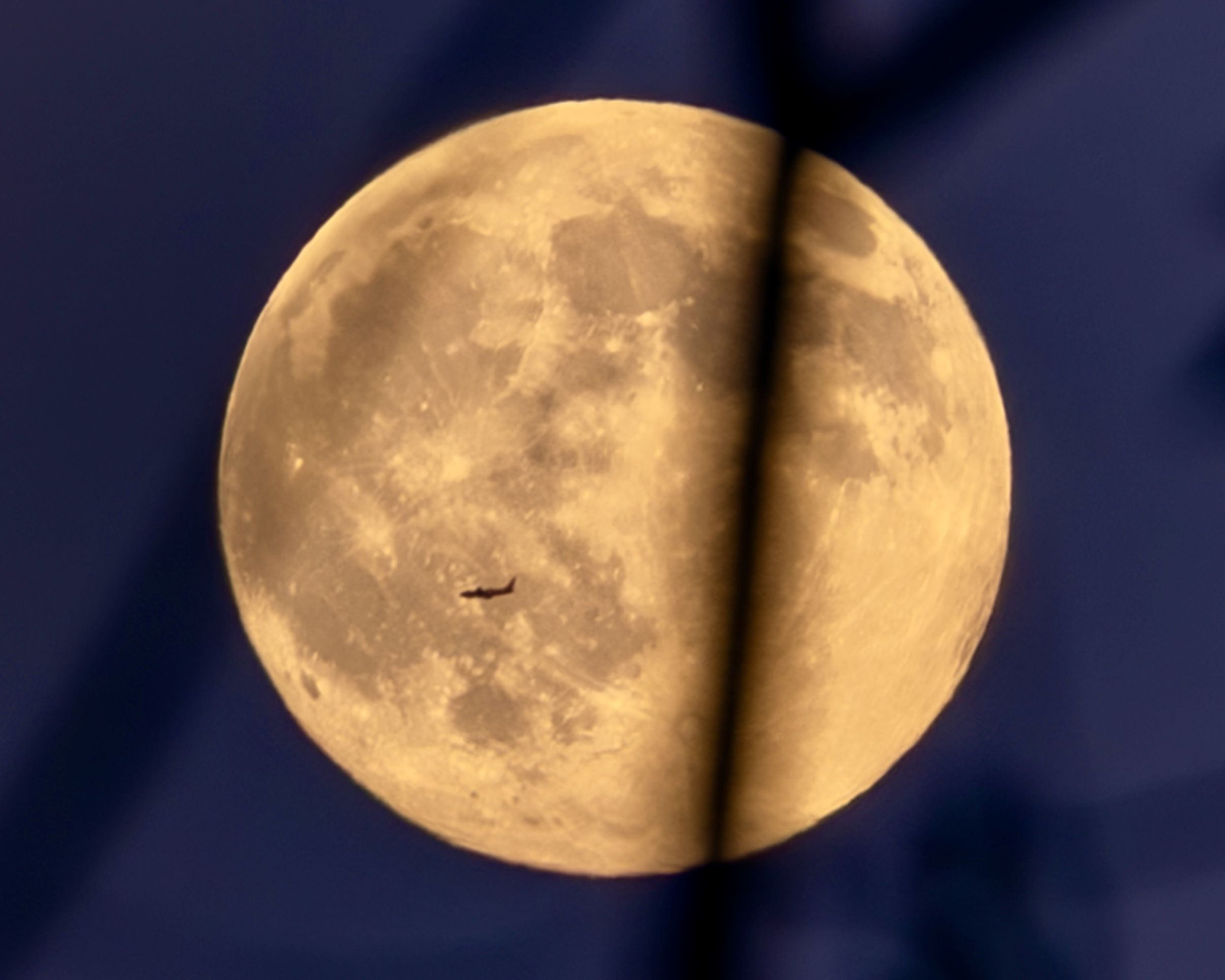 紅葉と月を狙っていたところに横切った飛行機、偶然の産物です。