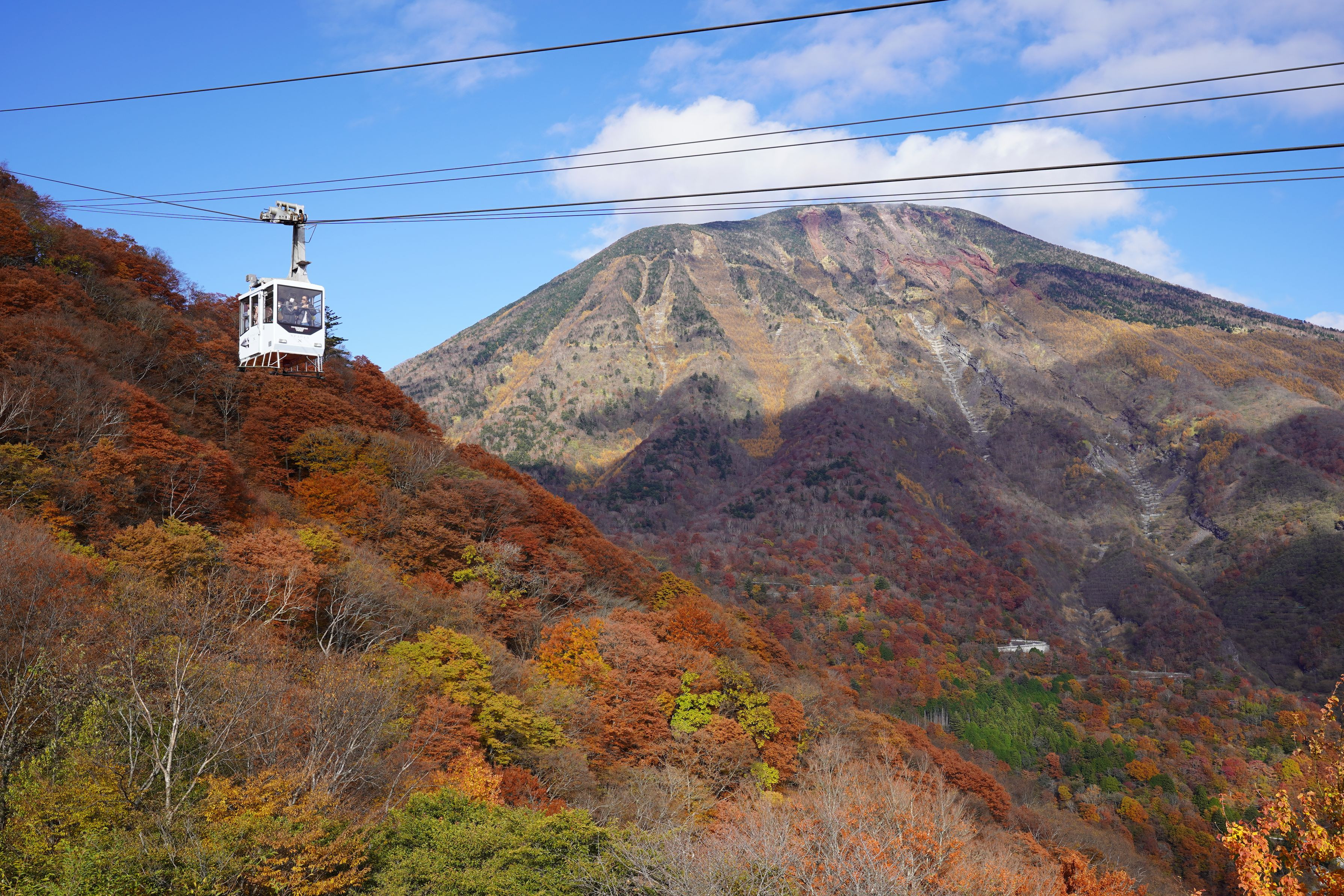 男体山と明智平ロープウェイです。 これに乗るためには朝早くから並ばないといけません。 順番待ちの間に撮影。 晴れて良かった!