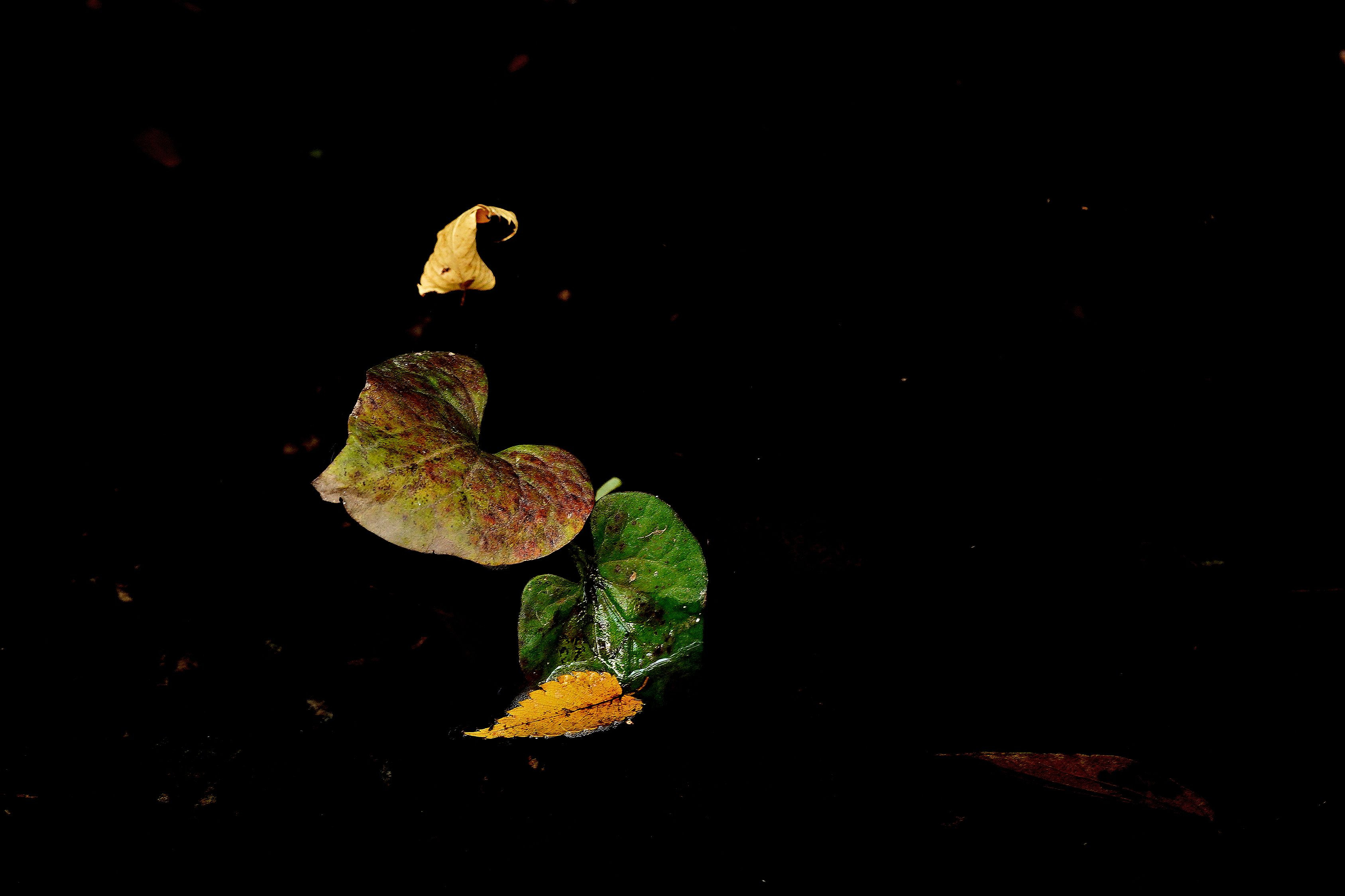 小さな川に浮かぶハート型の葉