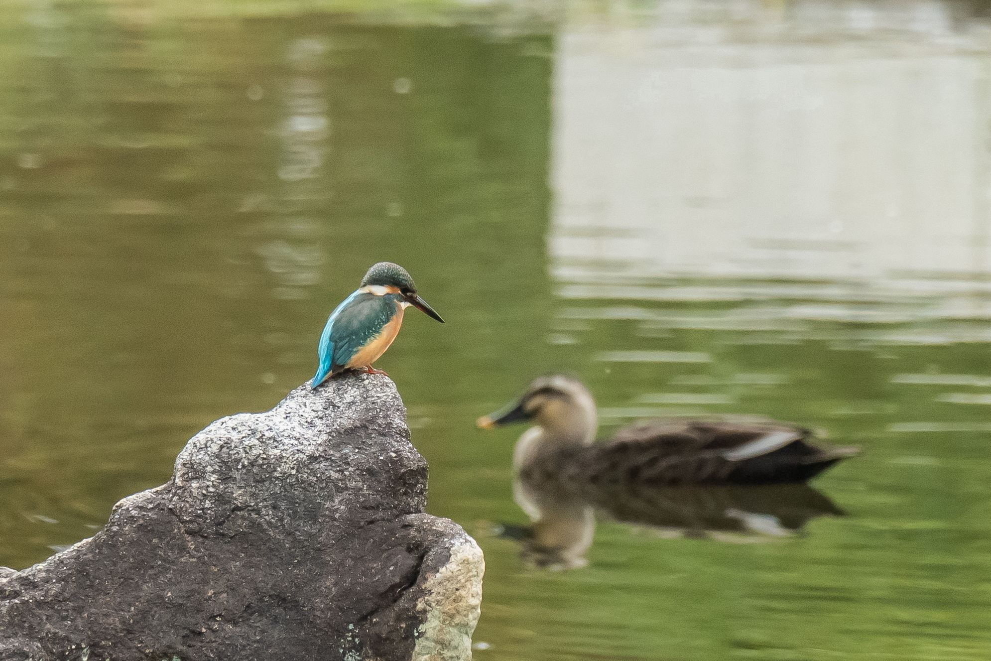街中のカワセミでカメラマンの前で飛び込みます 反対側から撮影