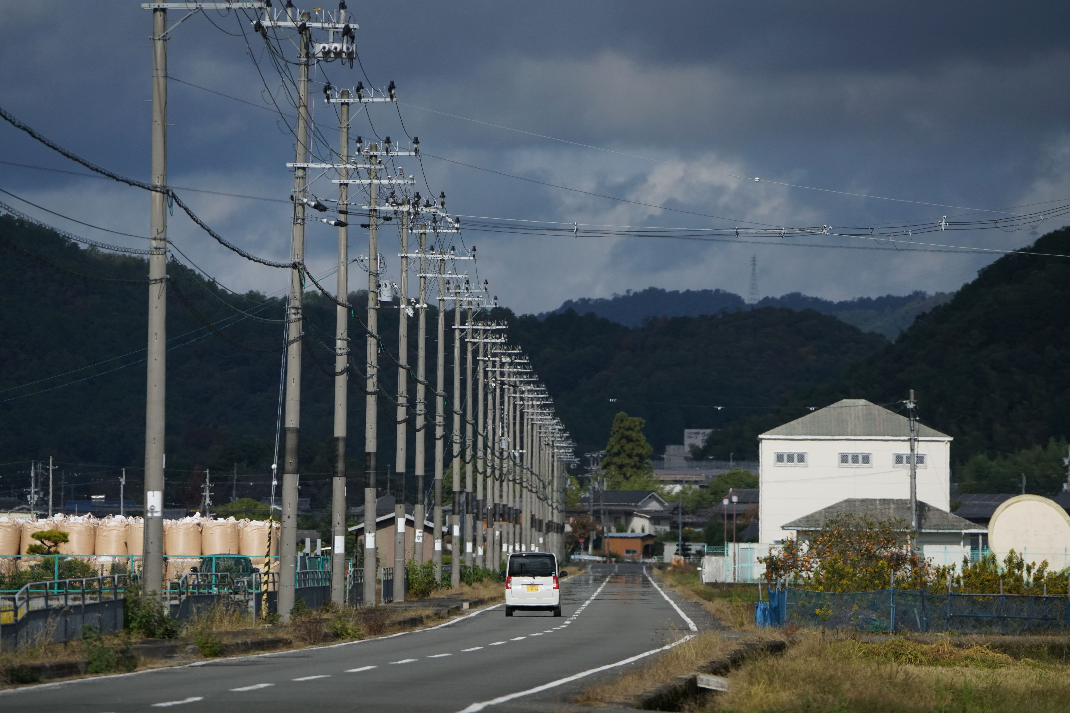 規則正しく一直線に並んだ電柱