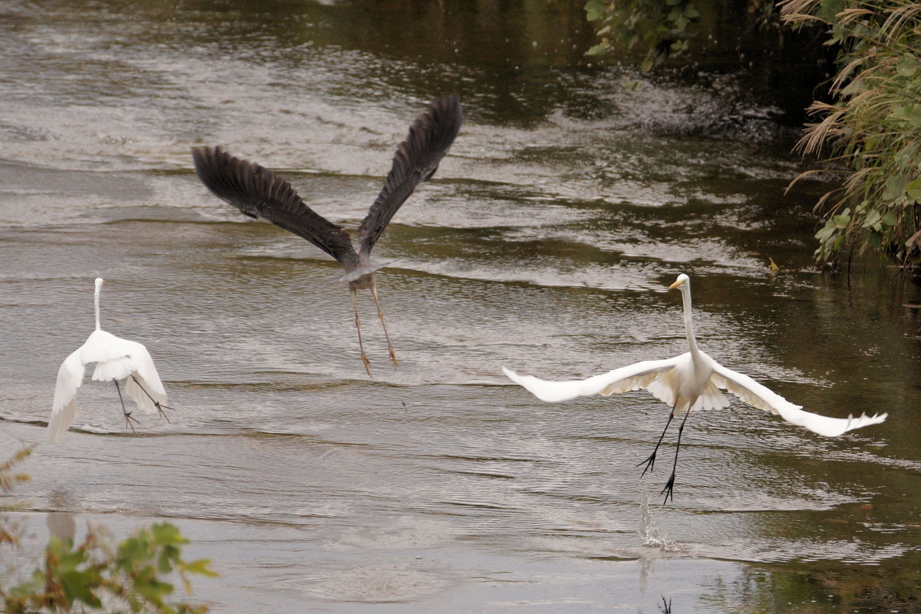 飛び立った3羽ですが、右端の1羽はカメラに向かって飛び立ちました。「どうしよう」顔をしてますね。