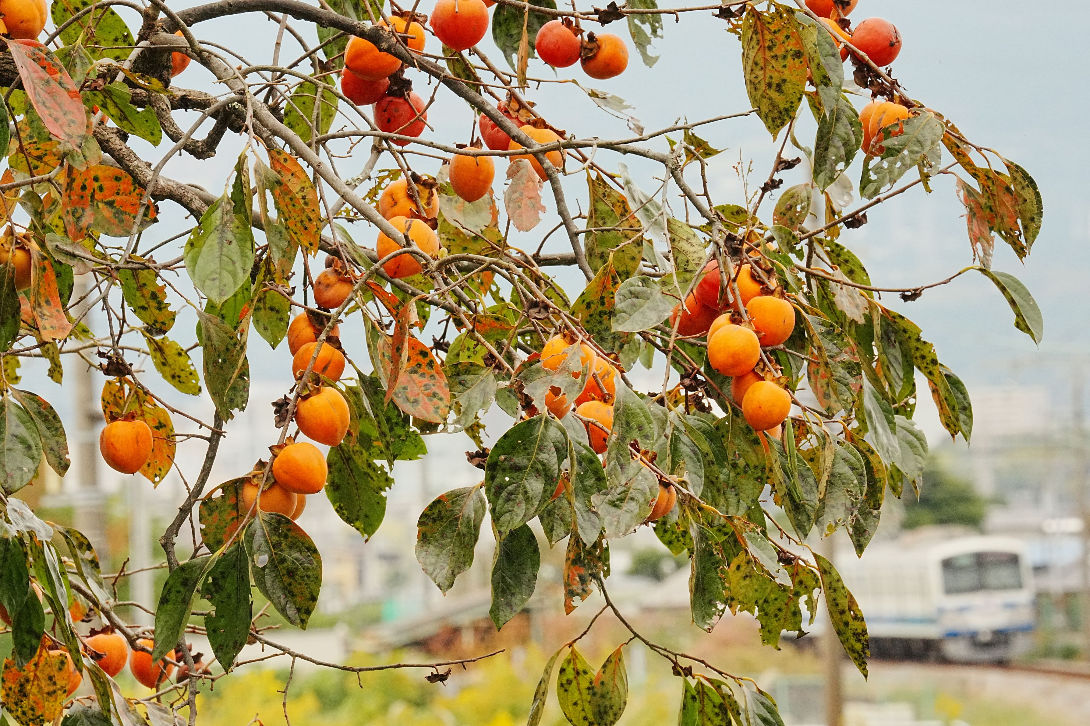 やっと秋らしくなってきた11月上旬の#伊豆箱根鉄道#駿豆線沿線。 線路際の柿の木には柿の実がたわわに生っていました。