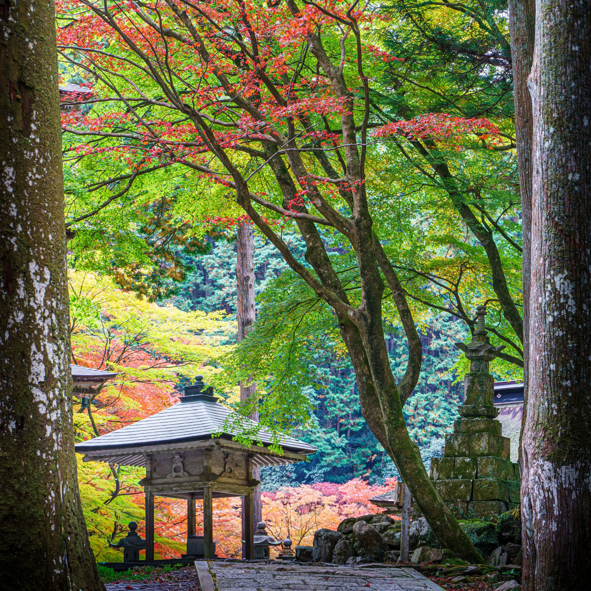 奥山・古刹の禅寺境内にて