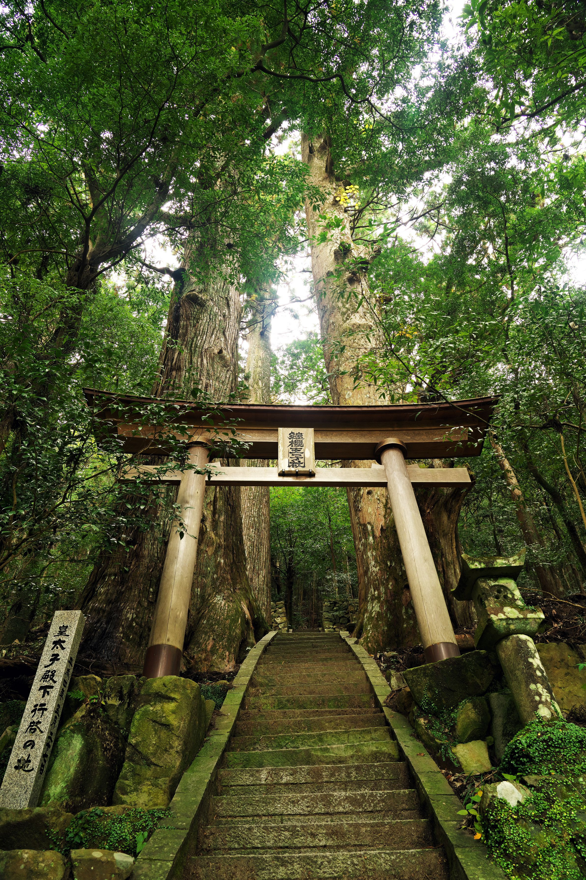 熊野古道に点在する王子社の一つ。境内には樹齢800年以上の杉が聳え立っています。