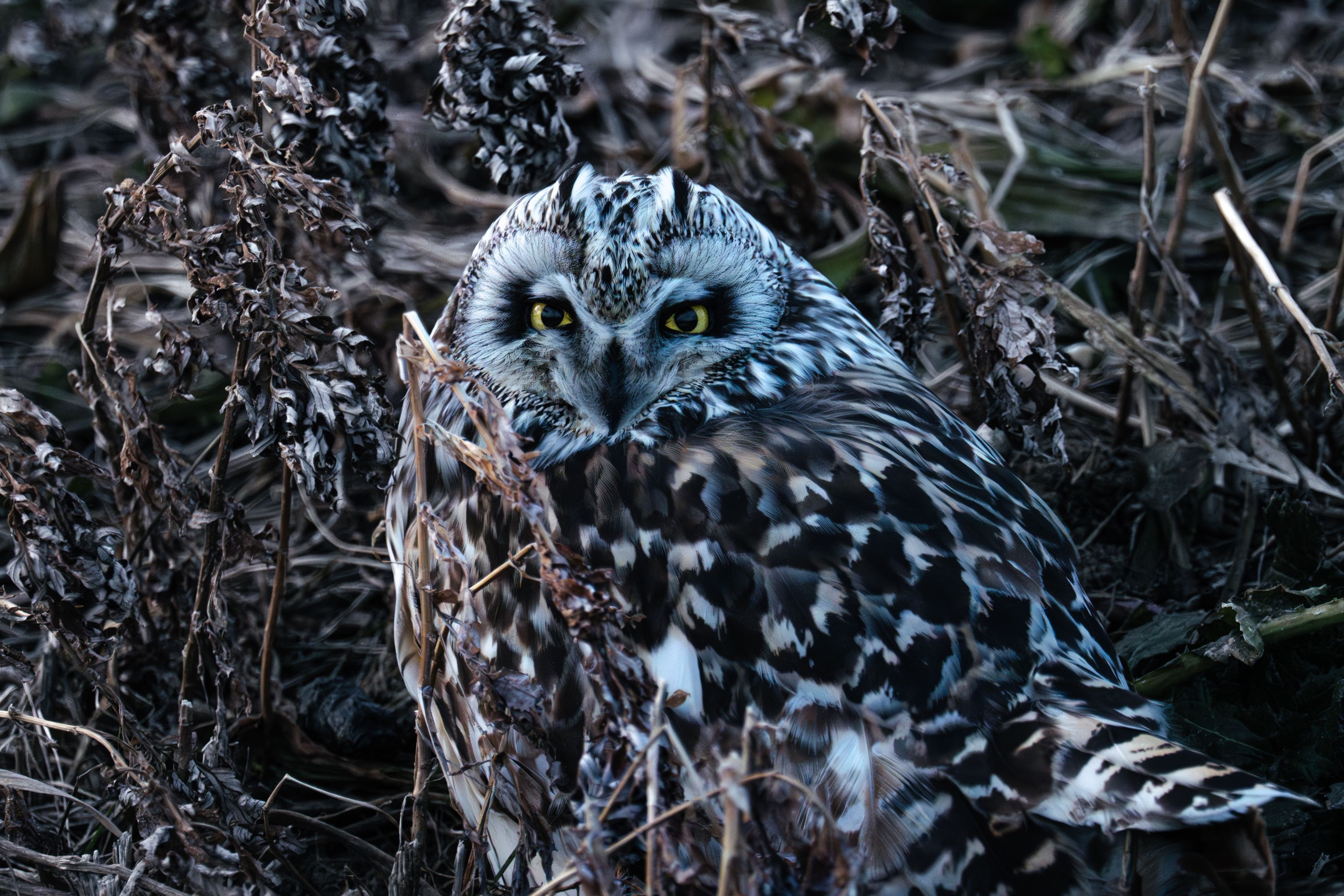 今年の2月に撮影したコミミズクです。 草むらにうまく潜んでいました。正面で撮ることができました。 #コミミズク#
