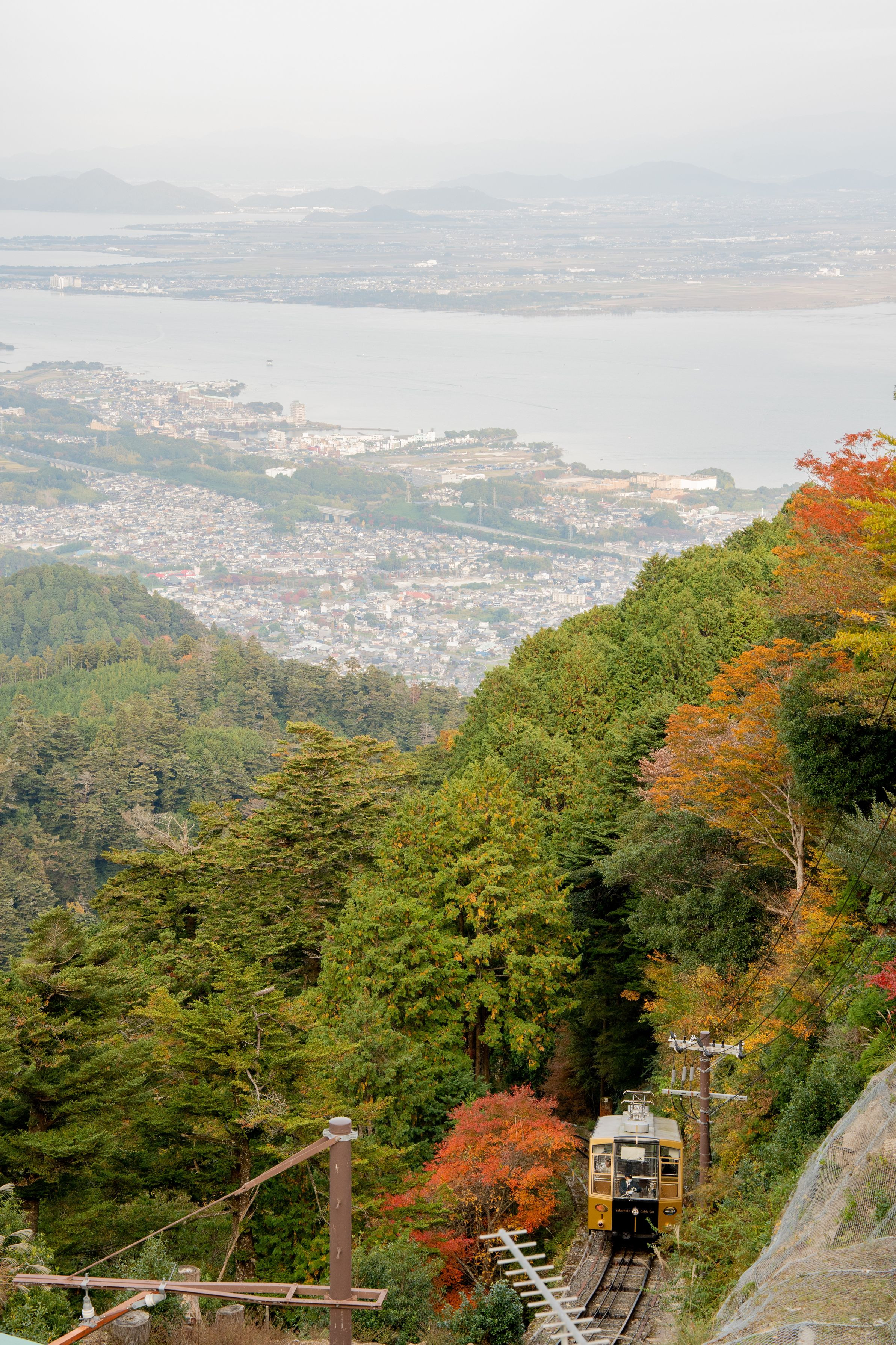 琵琶湖がかすむほど、高く高く登ってくる叡山ケーブル