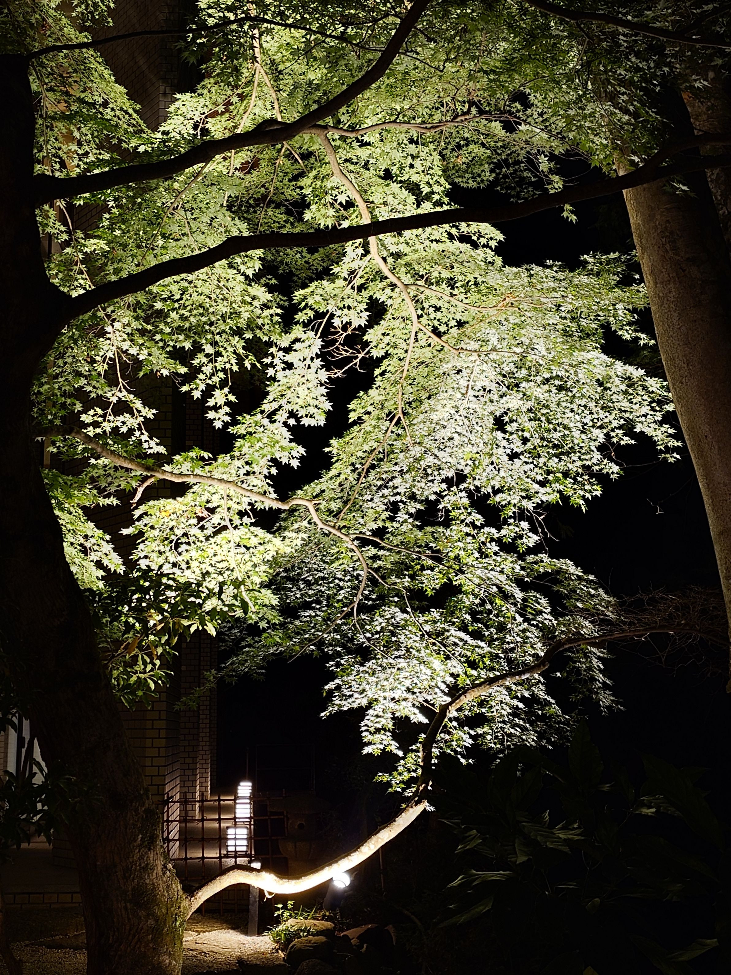 11月初旬の箱根湯本須雲川沿いのもみじです。温泉で温まったほてりを冷ましに夜散歩で立派なもみじに出会いました。