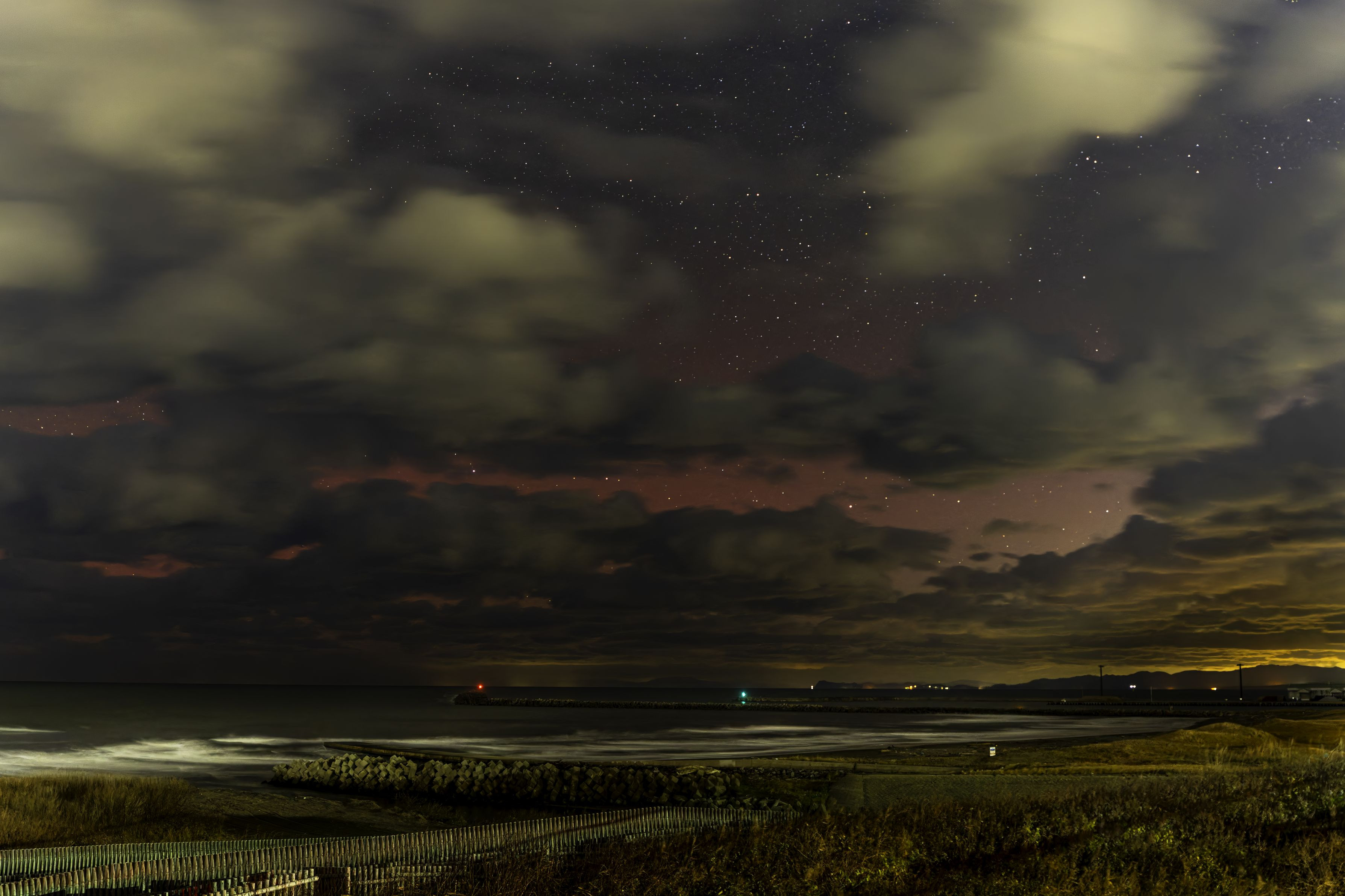 低経度オーロラ。雲が邪魔でした。