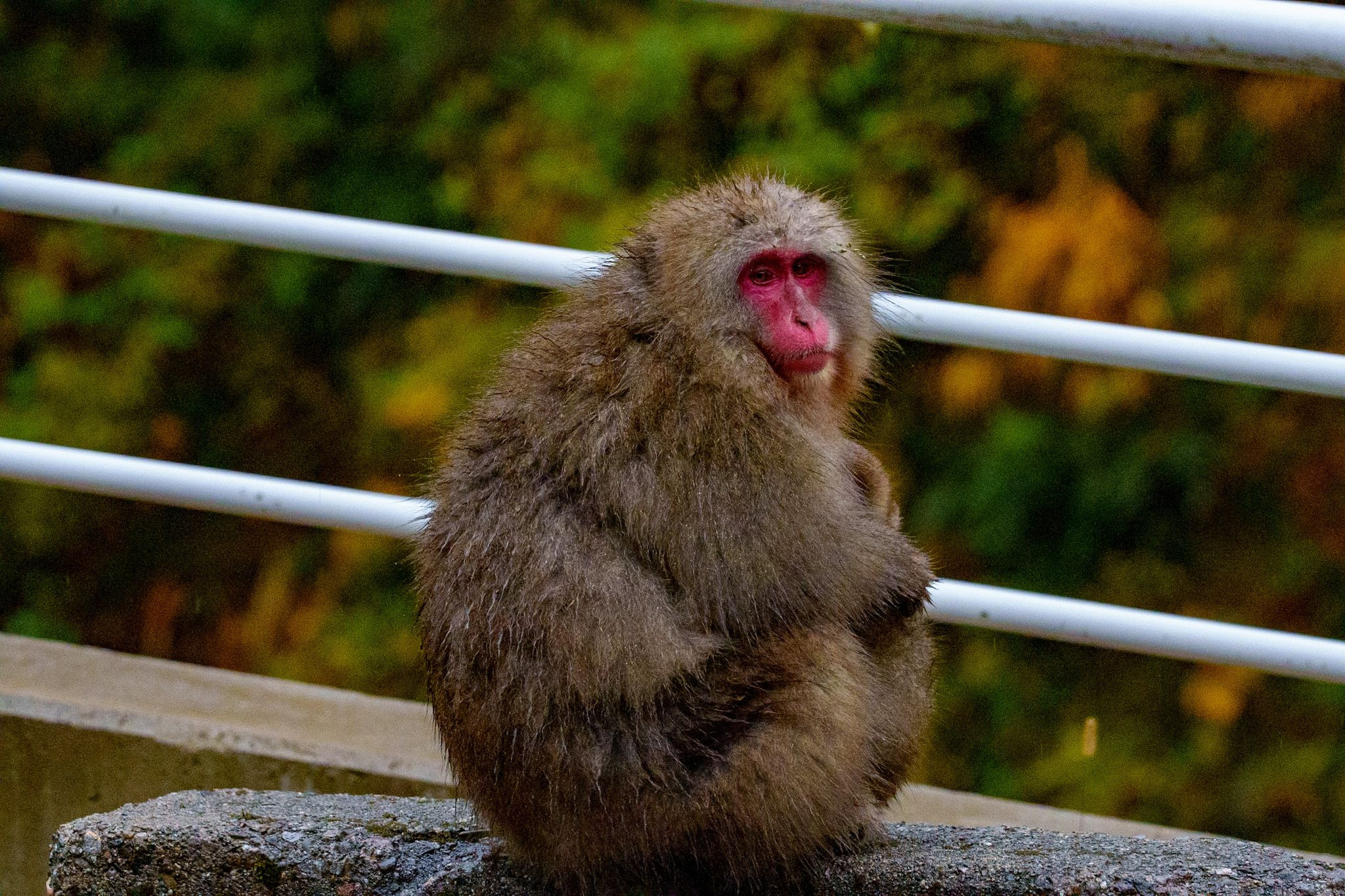 大切に赤ちゃんを抱っこして守ってるお母さん猿