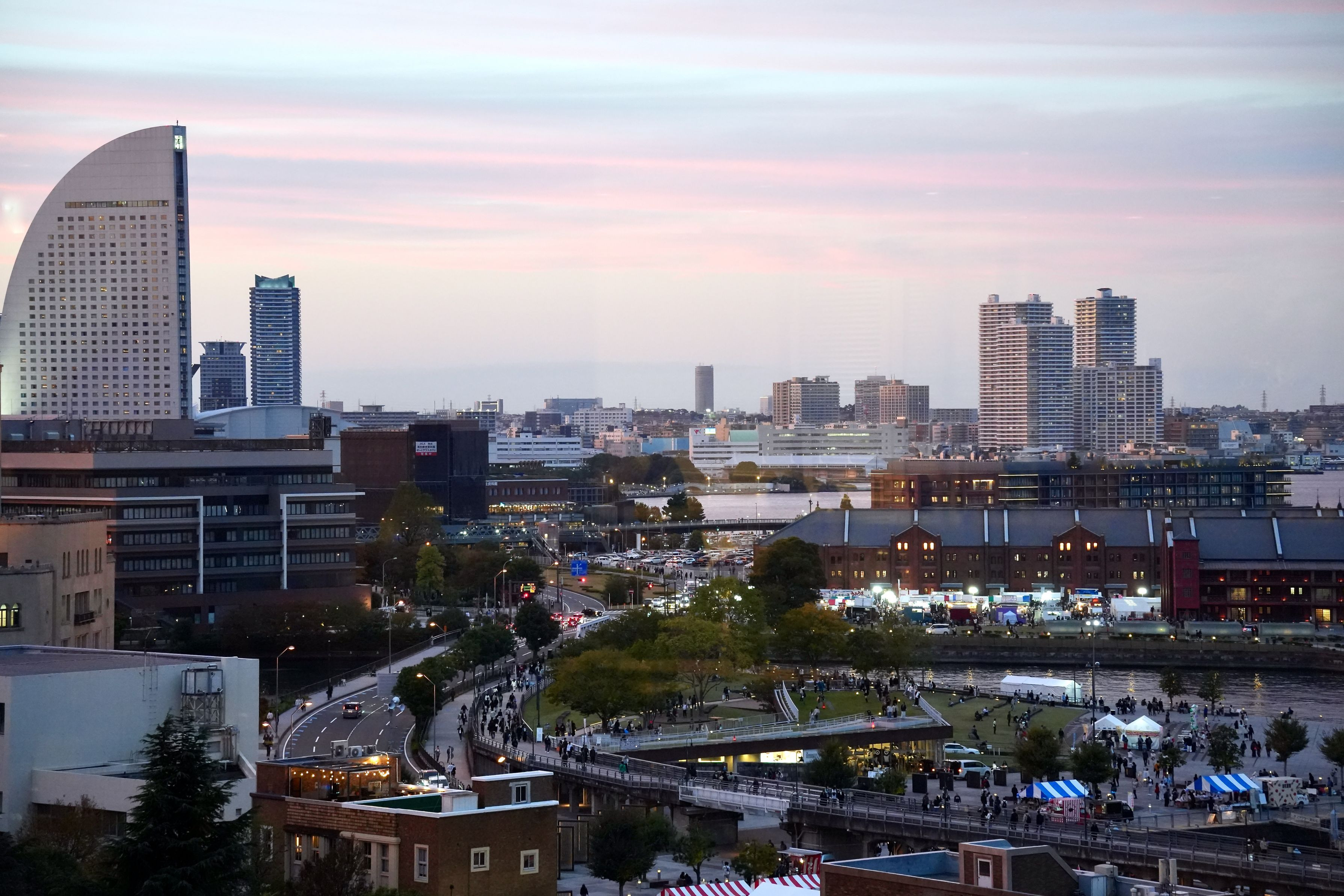 象の鼻パークから新港の夕景
