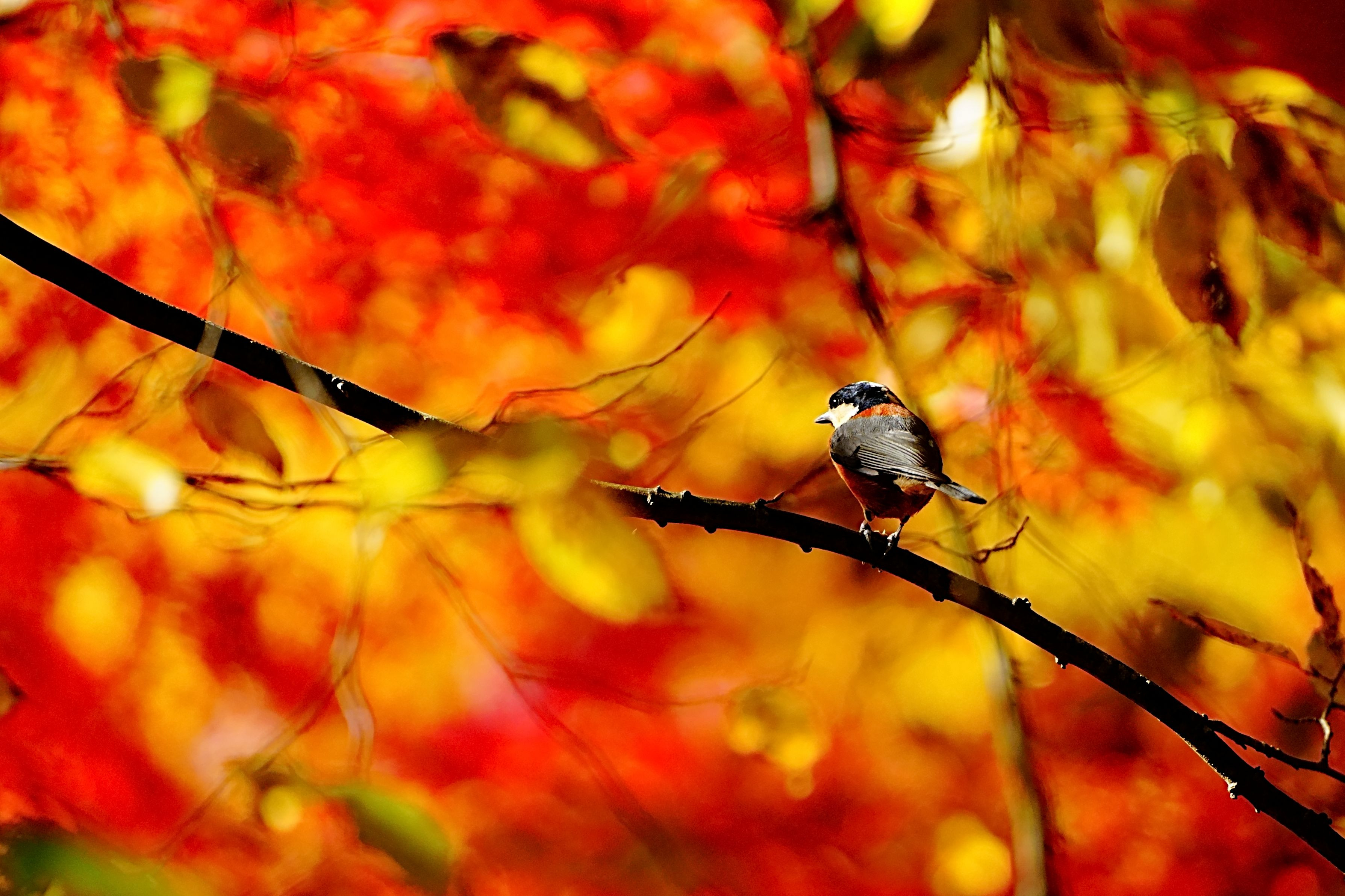 製品情報>My Sony>αcafe>紅葉の中を舞うヤマガラ(ヒデボンヌさん)