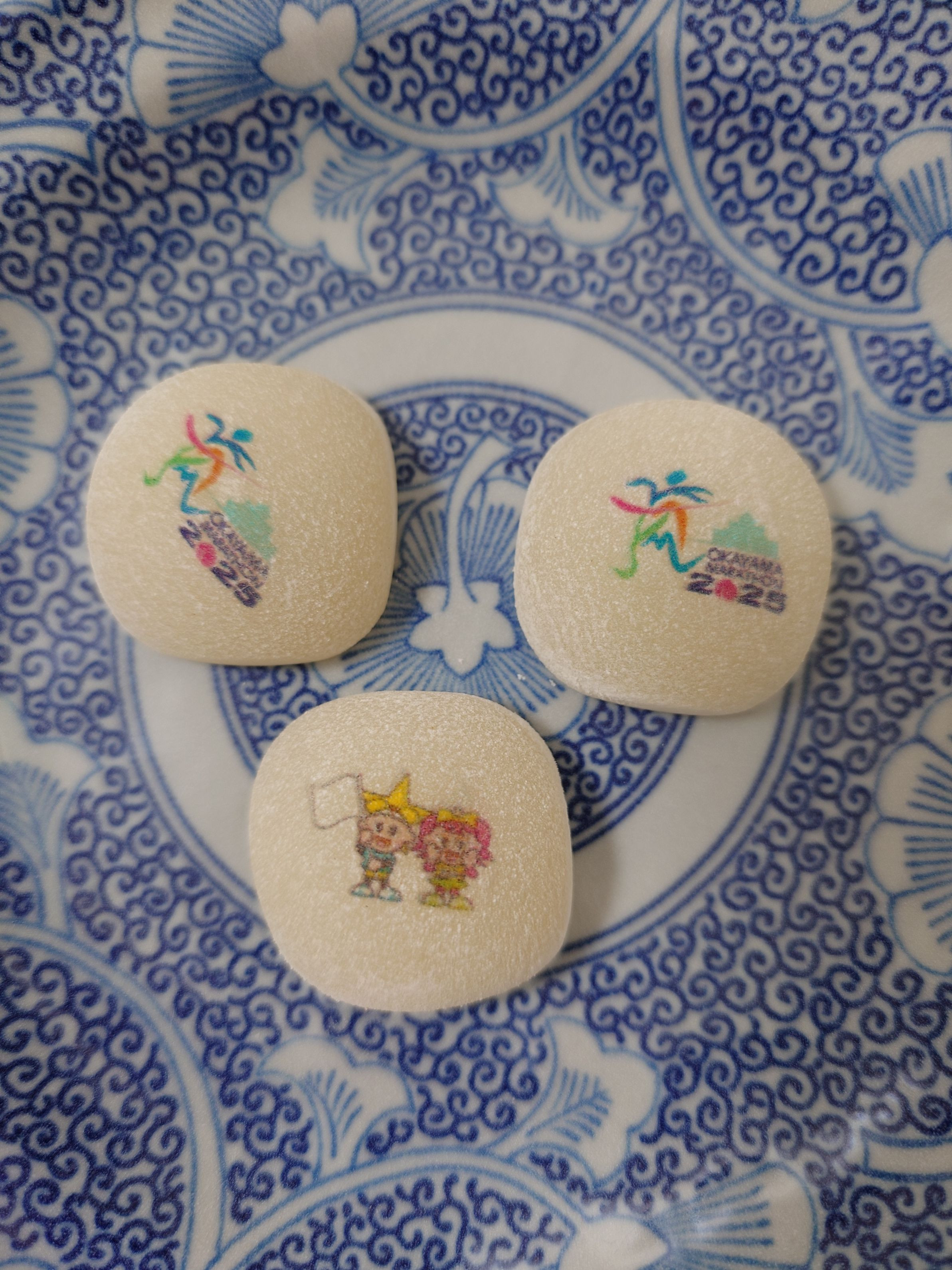 おかやまマラソンのお土産のきびだんご。 あらかた食べてこのデザインきびだんご可愛い。飼い犬に与えて桃太郎です。因みに喜んで飼い犬は、食べました。