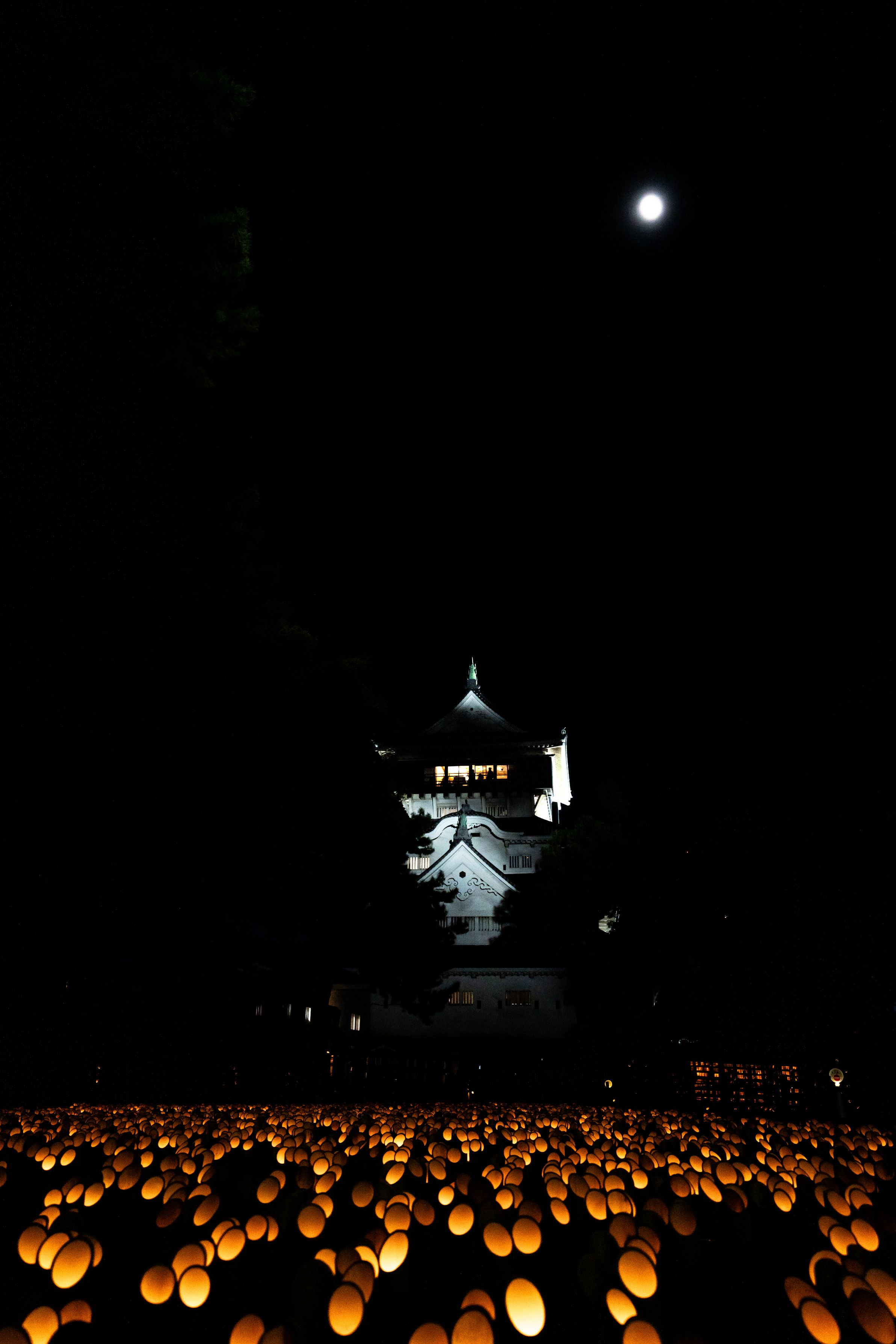 小倉城の竹あかりの定番構図です 丁度月がいい感じで出てました