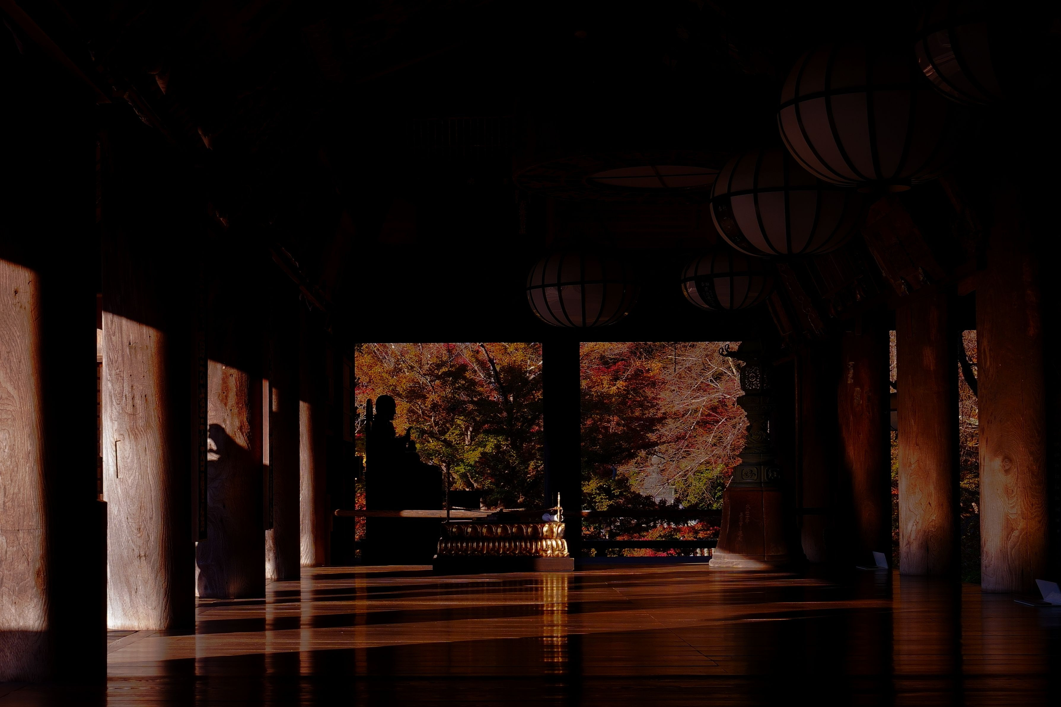 製品情報>My Sony>αcafe>朝日昇る長谷寺の紅葉 登廊と国宝の本堂(はるぷんてさん)