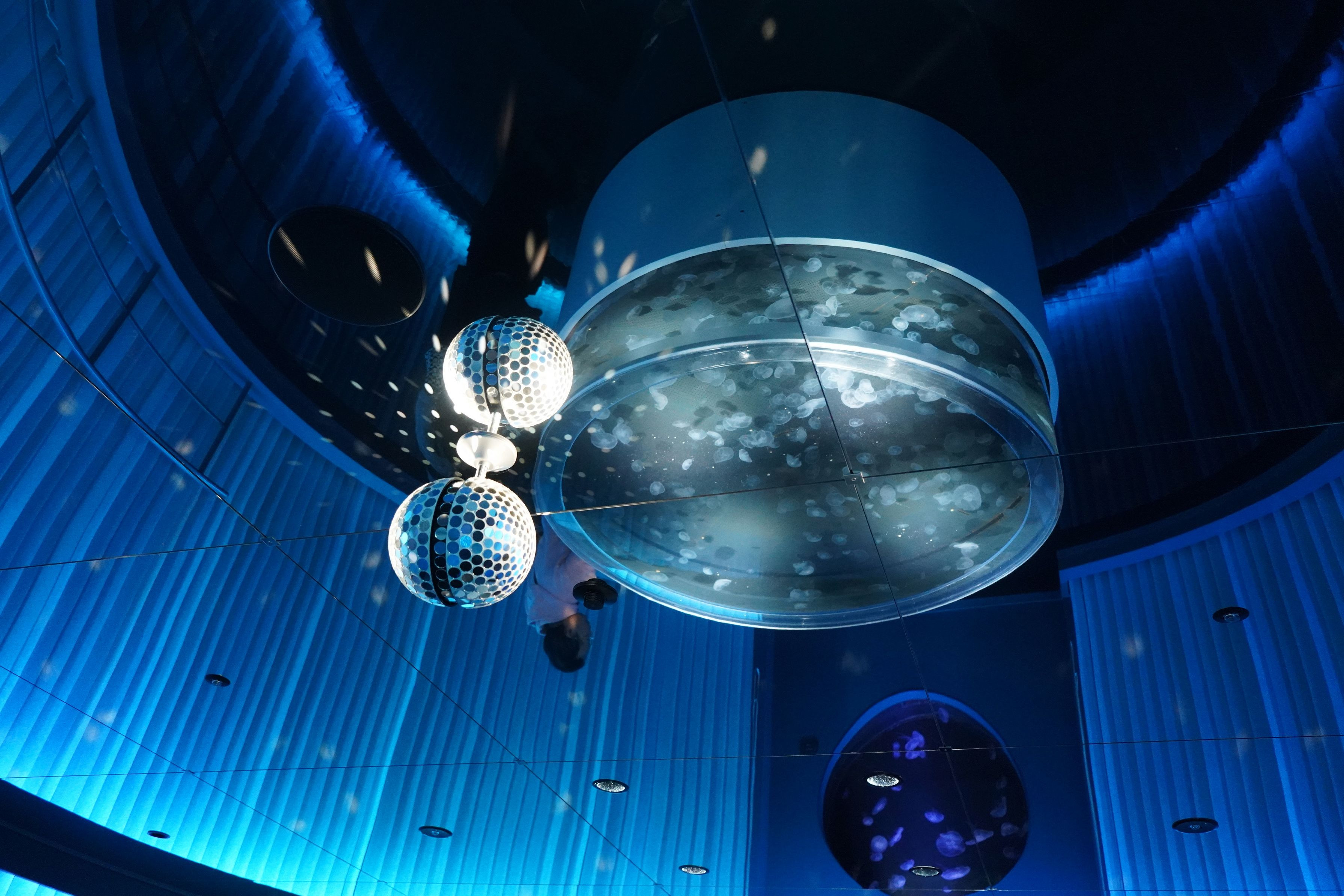 多様性のシーンではクラゲがミラーボールに照らされて展示