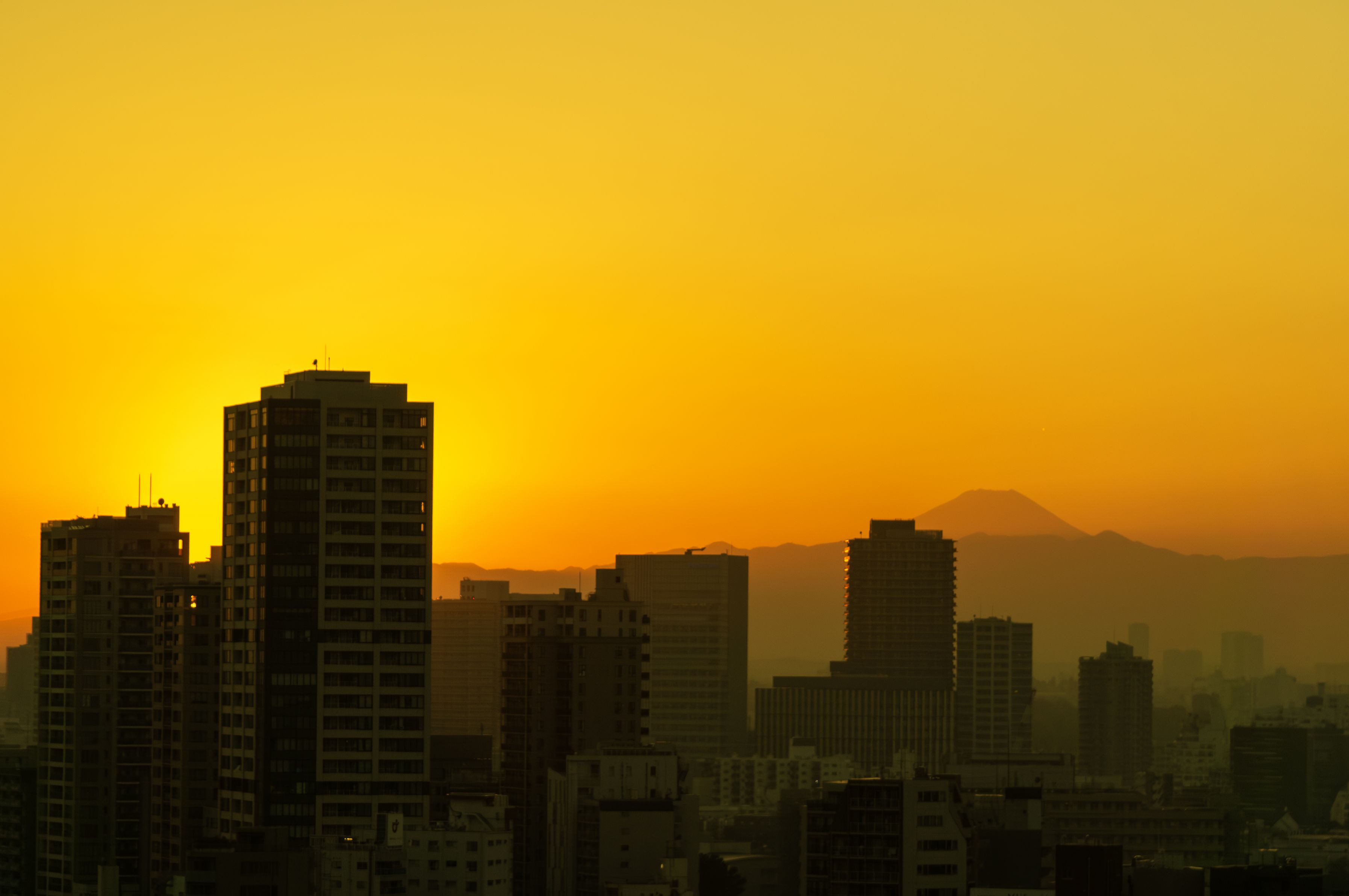 夕焼け撮る練習中 霞がかった天気だったので夕焼け綺麗になるかなと構えてた