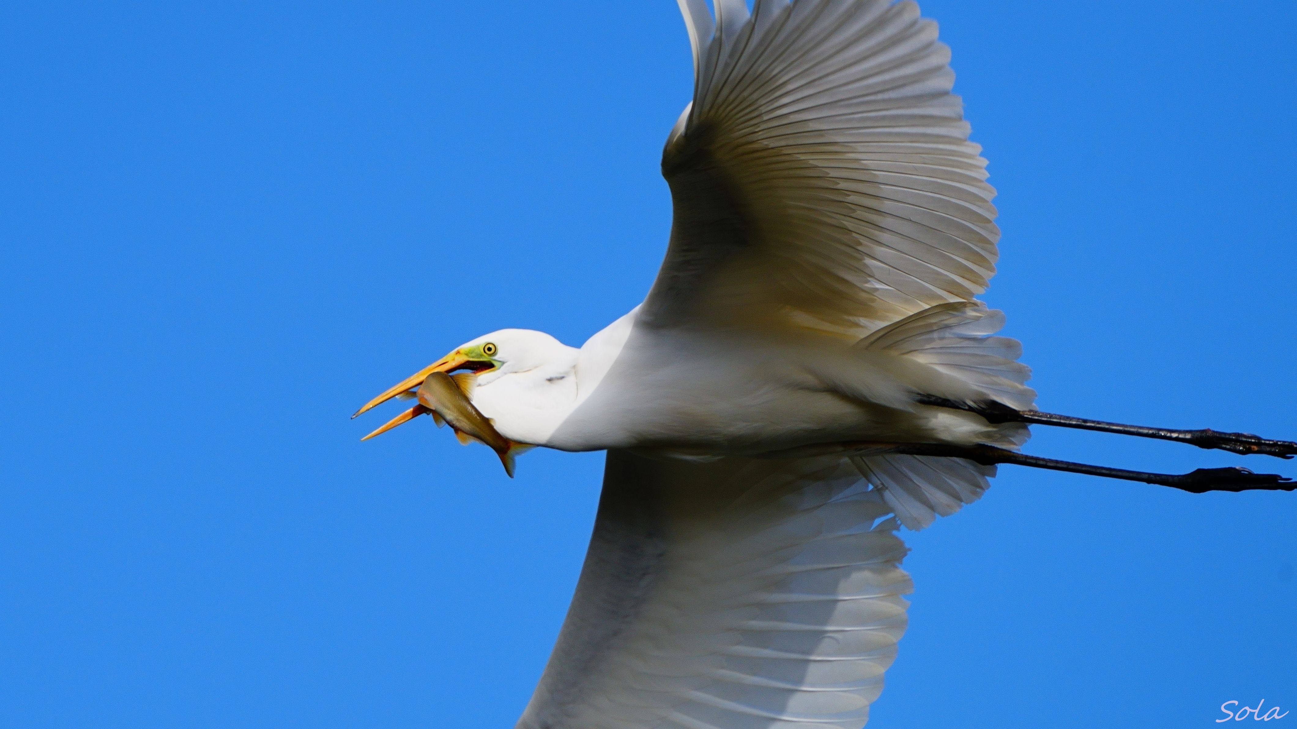 塩焼きにしたら美味しそうな鮎を咥えて飛んでいました。 (今月のお豆無くなりました。)