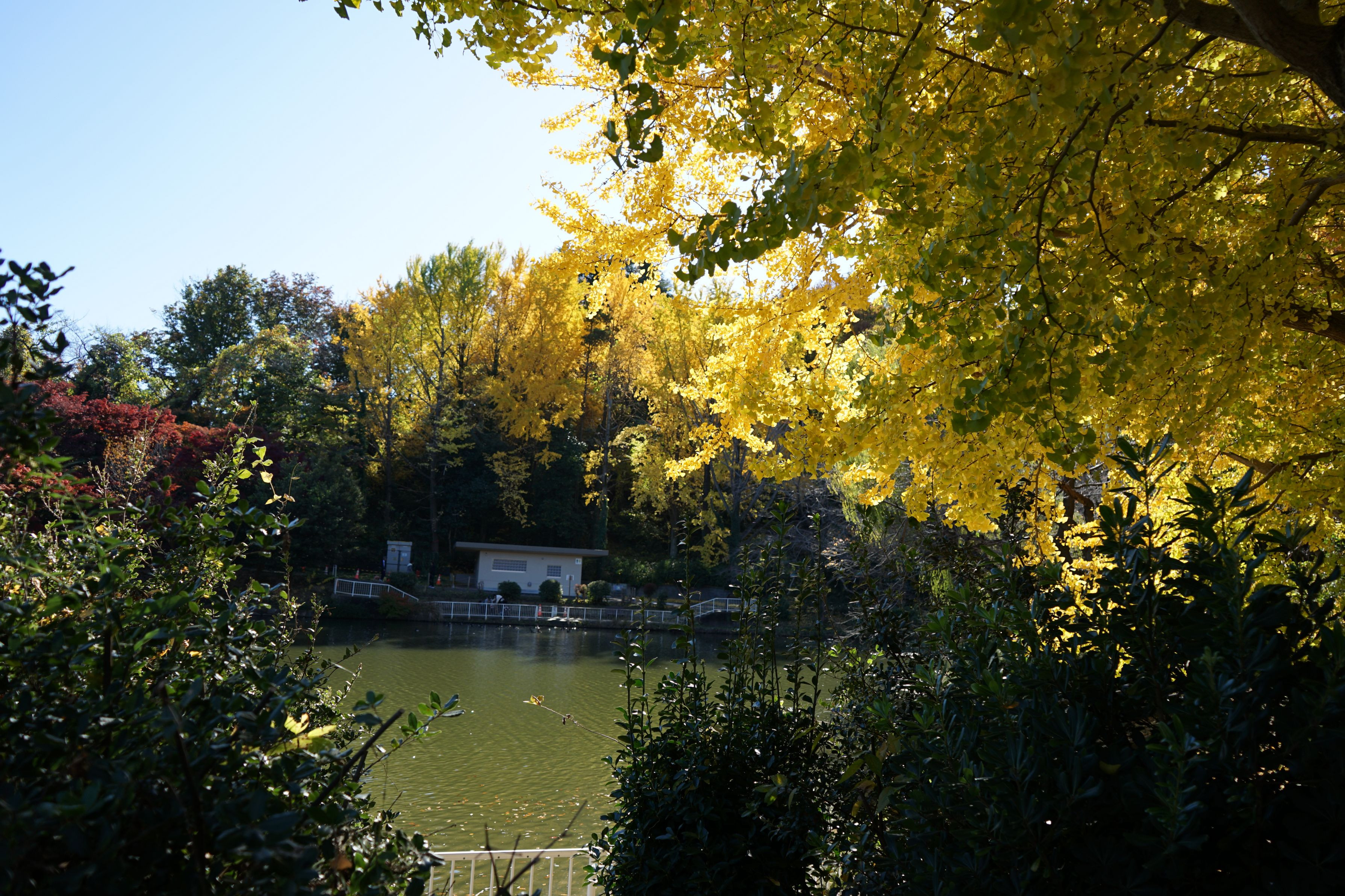 ビル群の中の秋景色