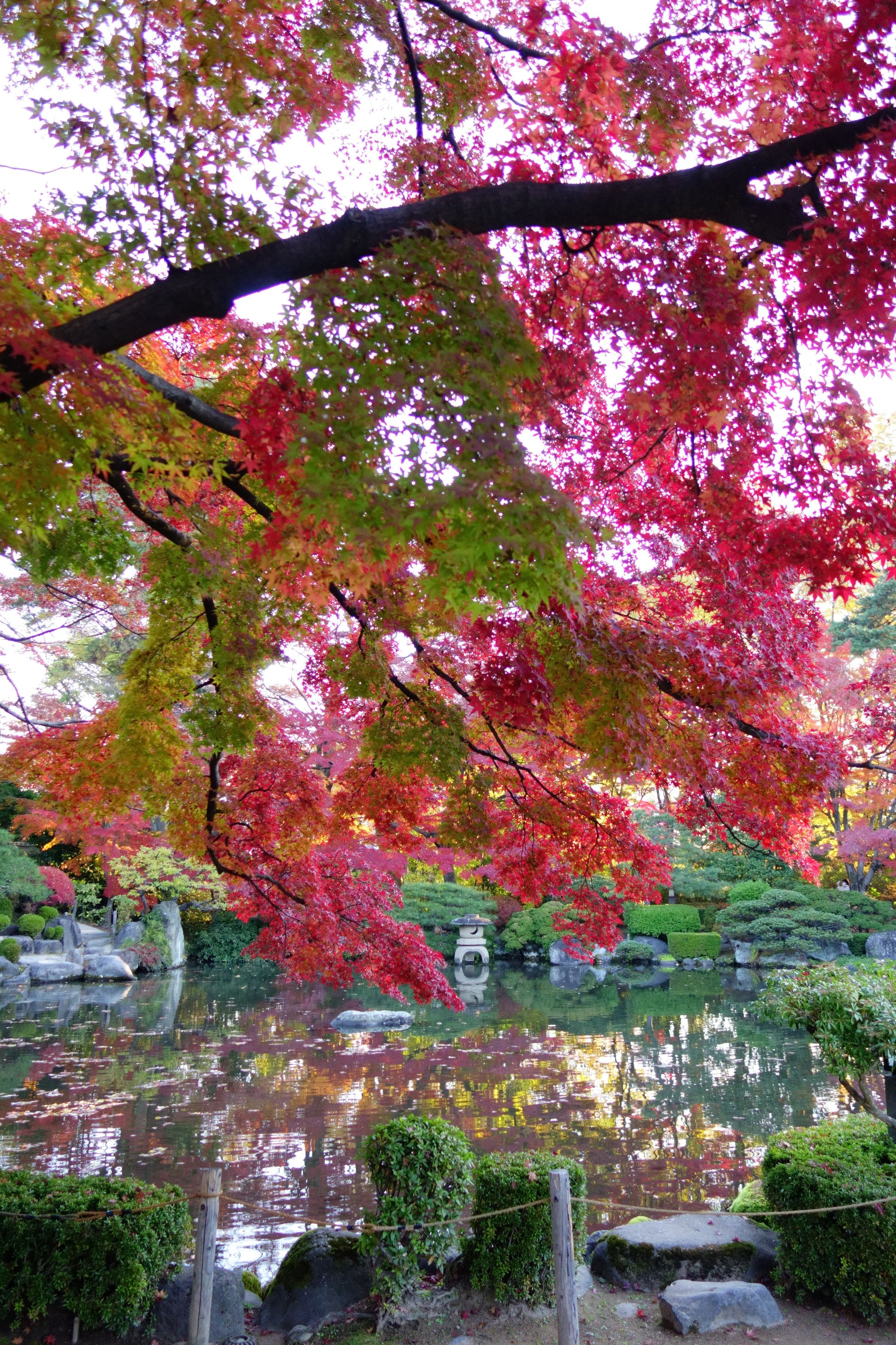 曇天夕方の紅葉