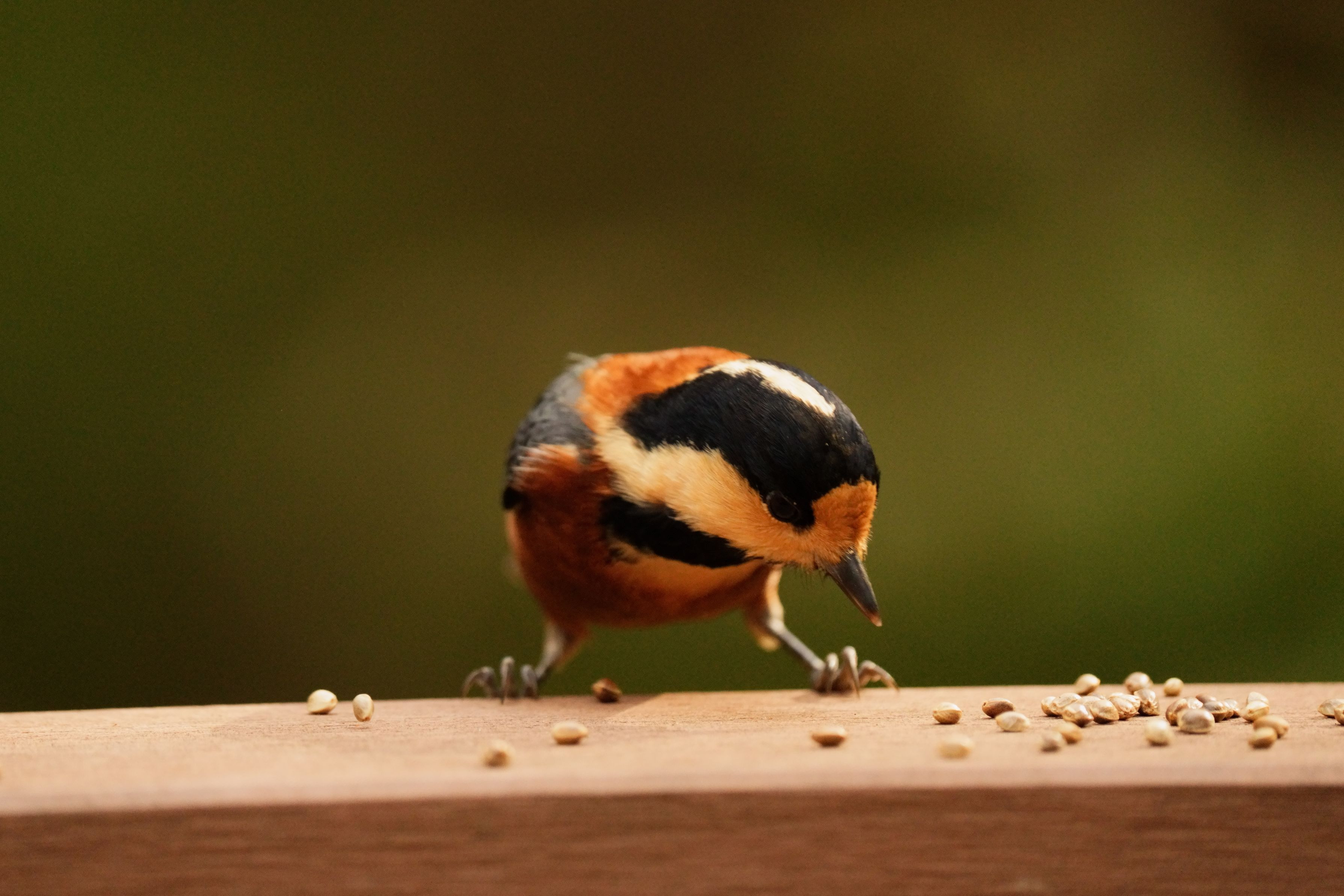 公園の手すりに誰かがヤマガラに餌を置いていたようです。
