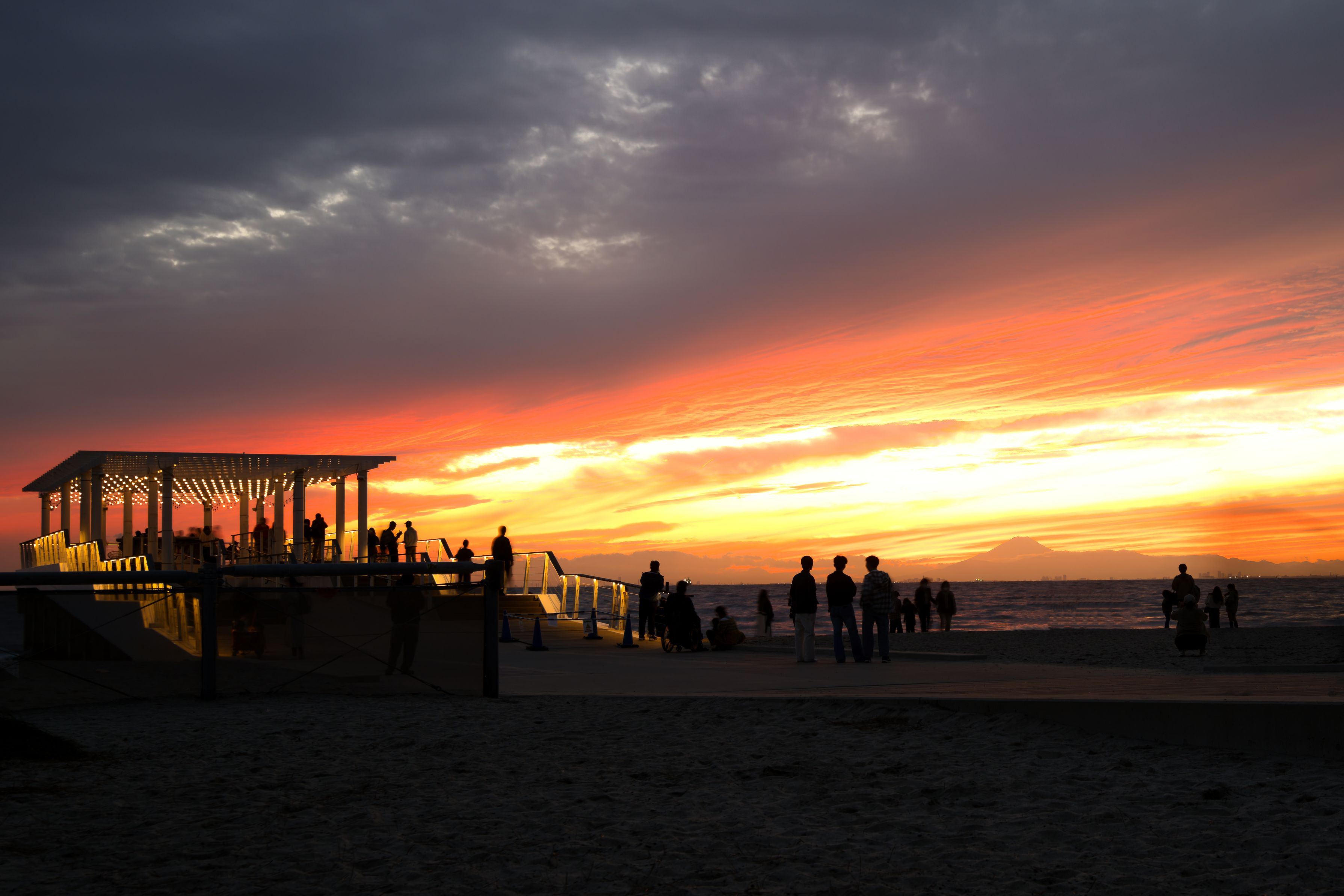 東京湾の夕焼け・・・遠くに富士山を眺めながら