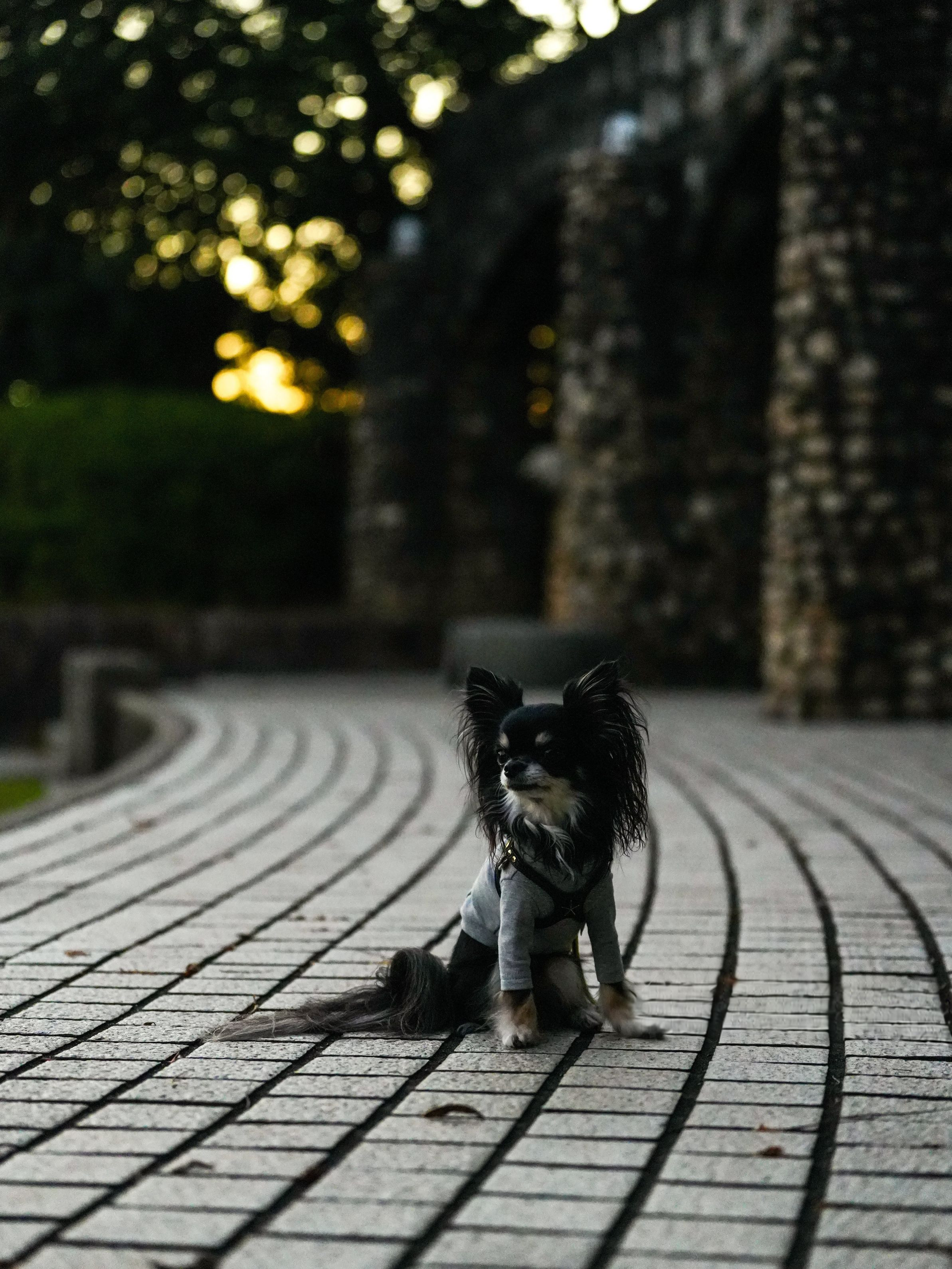 大好きな公園散歩 暗くなってきたから帰りたいんだけど、まだ遊び足りないようです(動いて〜) ※リードは消してます