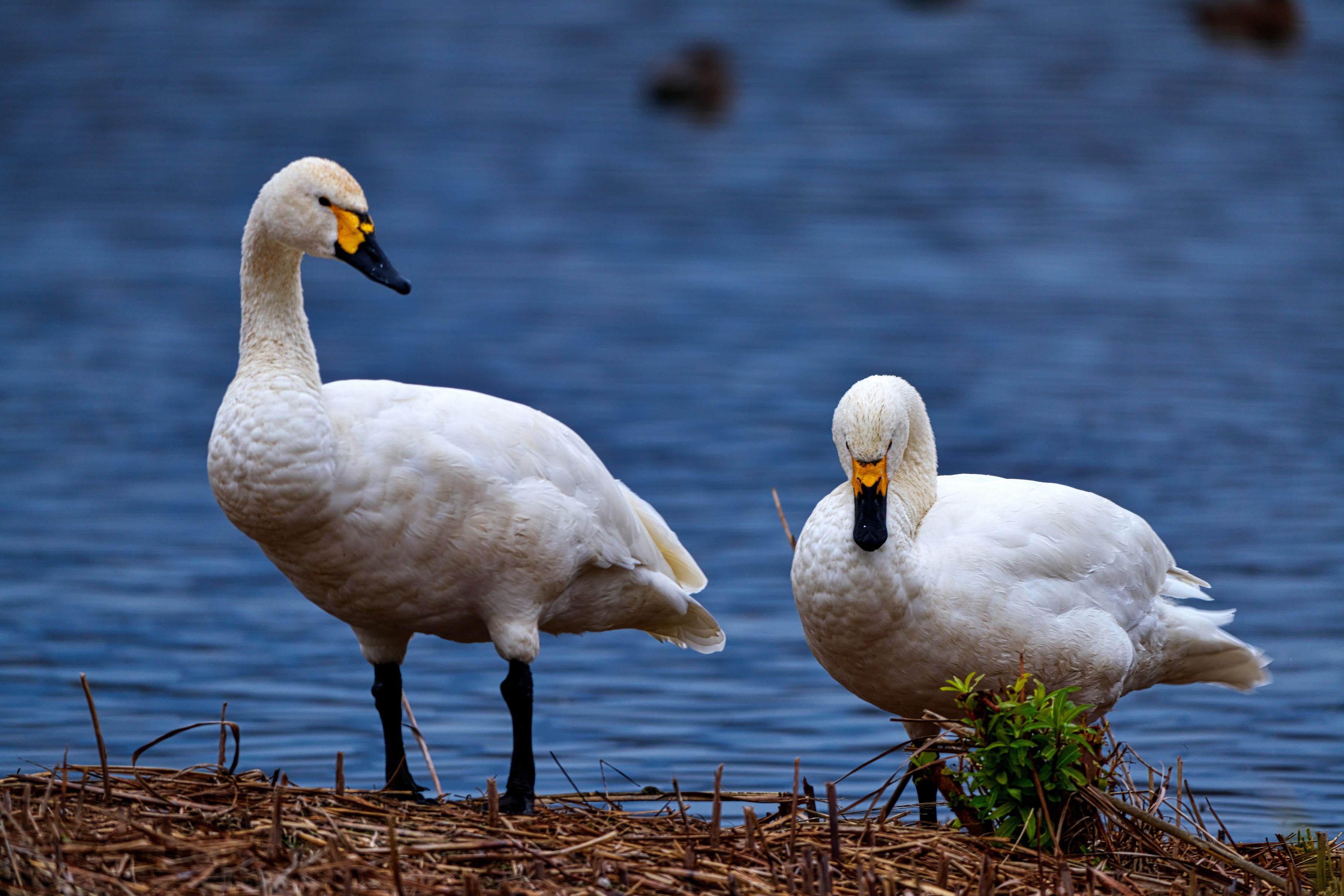 今年も安曇野にコハクチョウが来訪しました。この日は広い池に2羽のみ。夫婦か兄弟なのか2羽の関係はわかりませんが、のんびりと長旅の疲れを癒しているようでした。