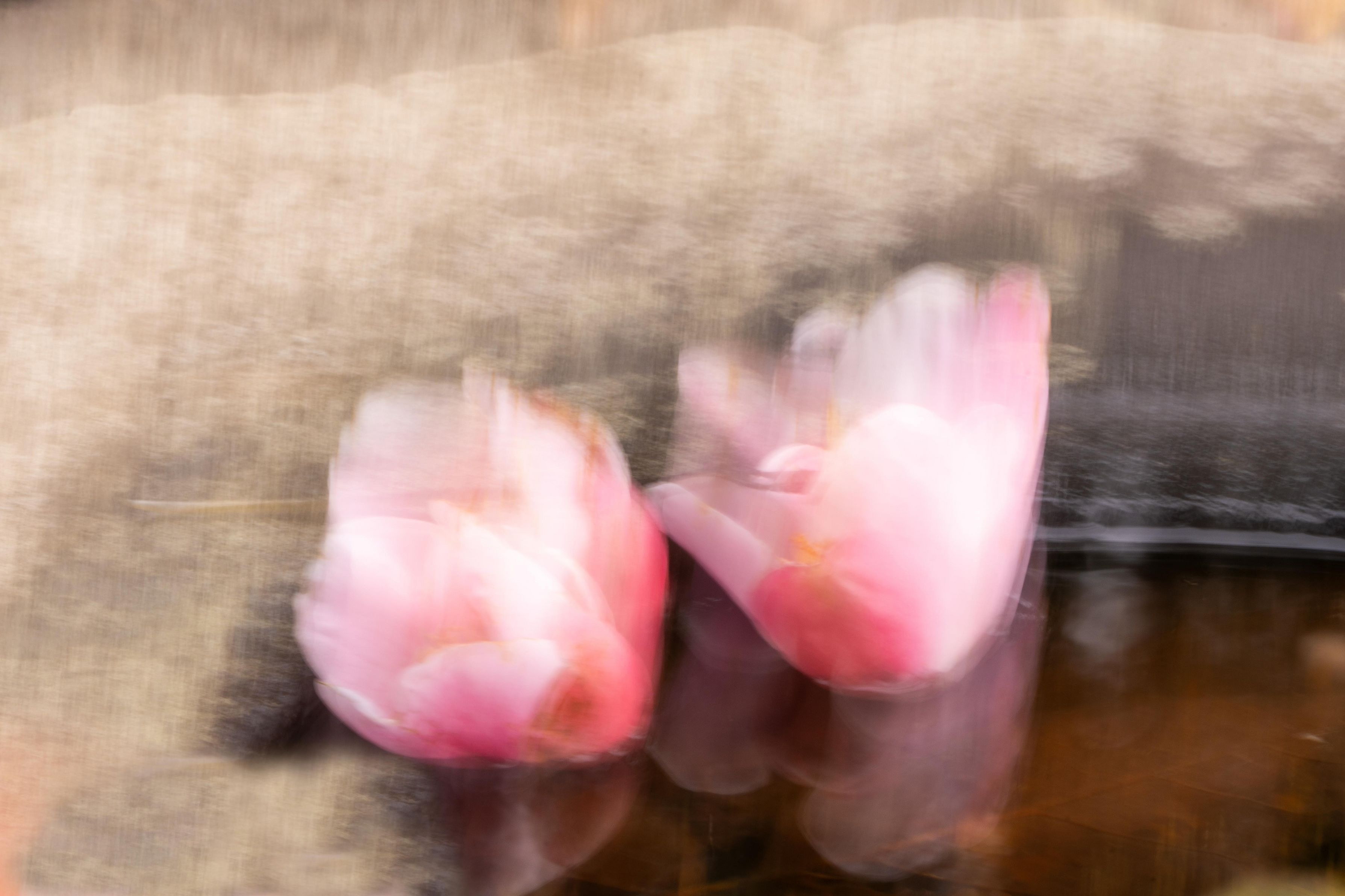 神社の前の水に椿2つ浮かべて