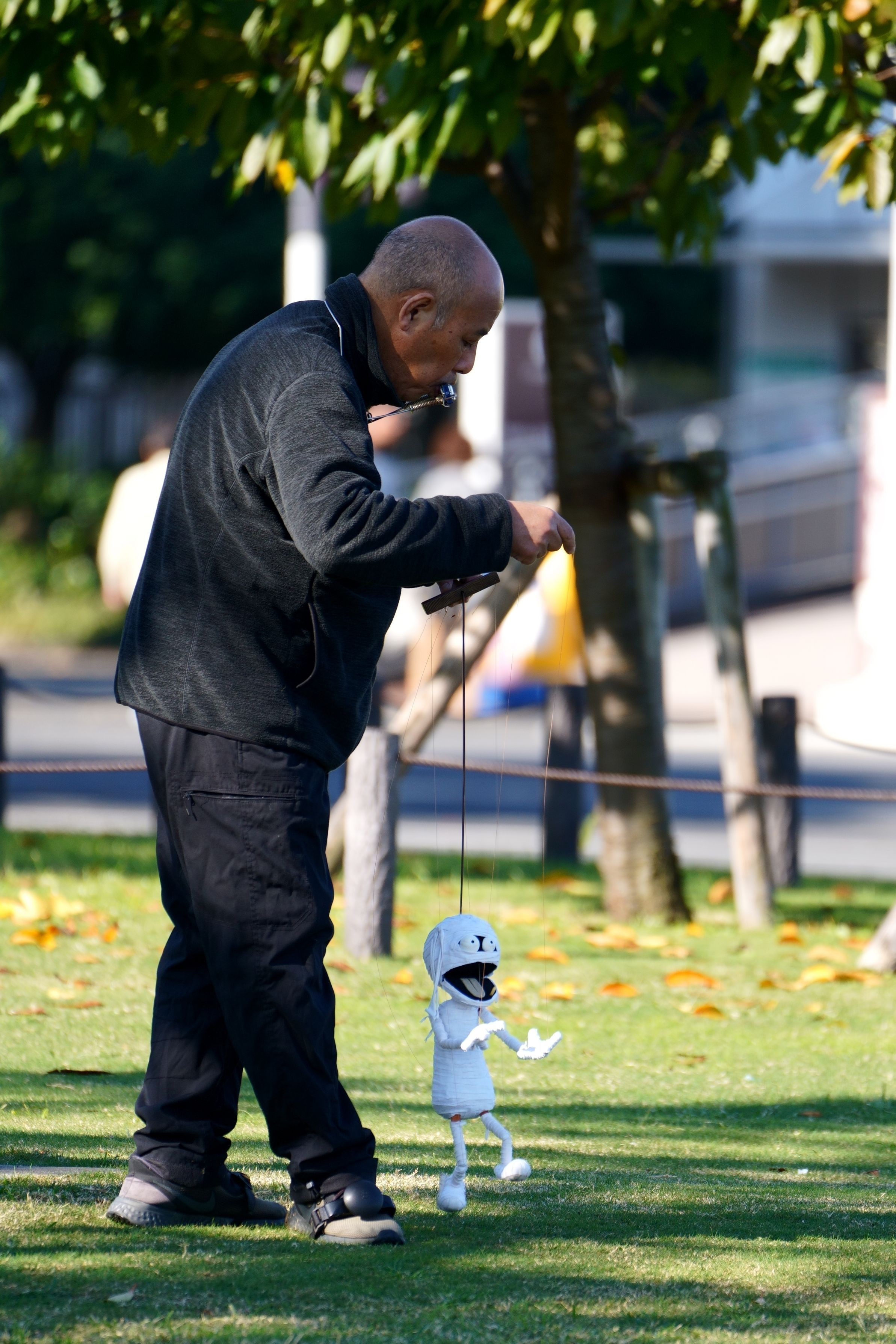 公園で秋らしい風景を探しているときに出会った人形遣いを撮りました。服装からして練習でもしているようでリラックスしたゆるい感じが良くて。