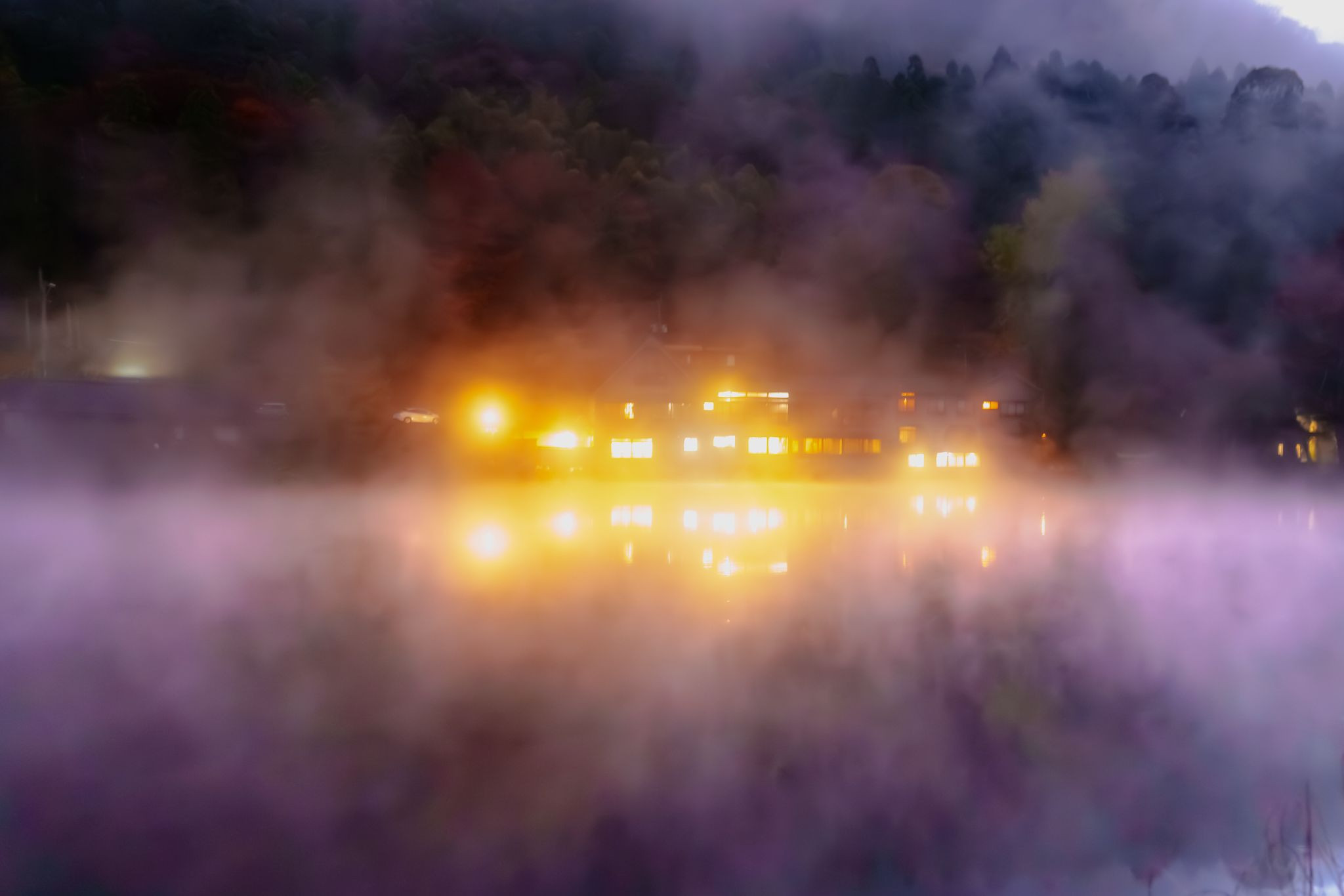 金鱗湖の朝霧