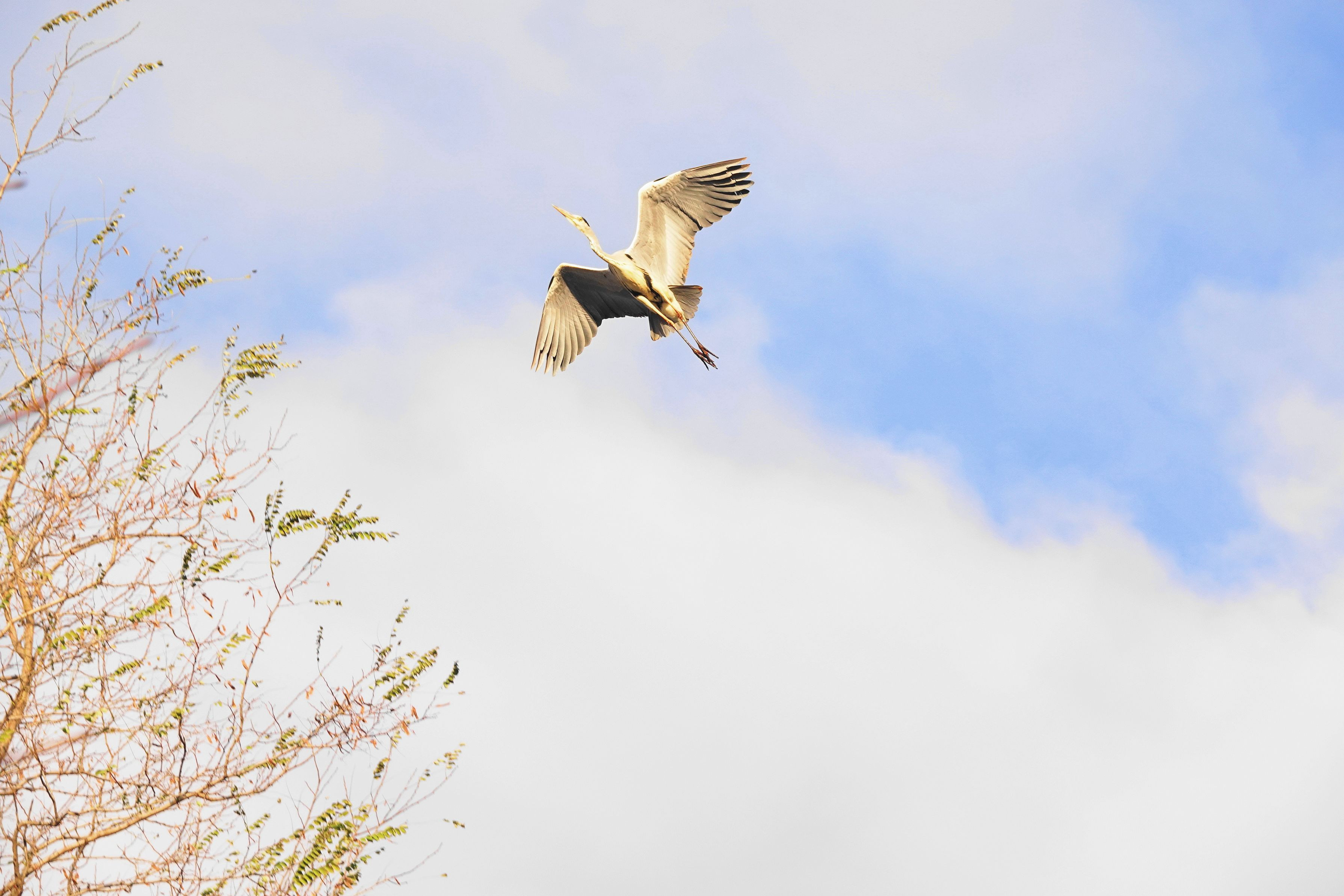 アオサギの仔が1羽、餌を求めて飛んでいました。