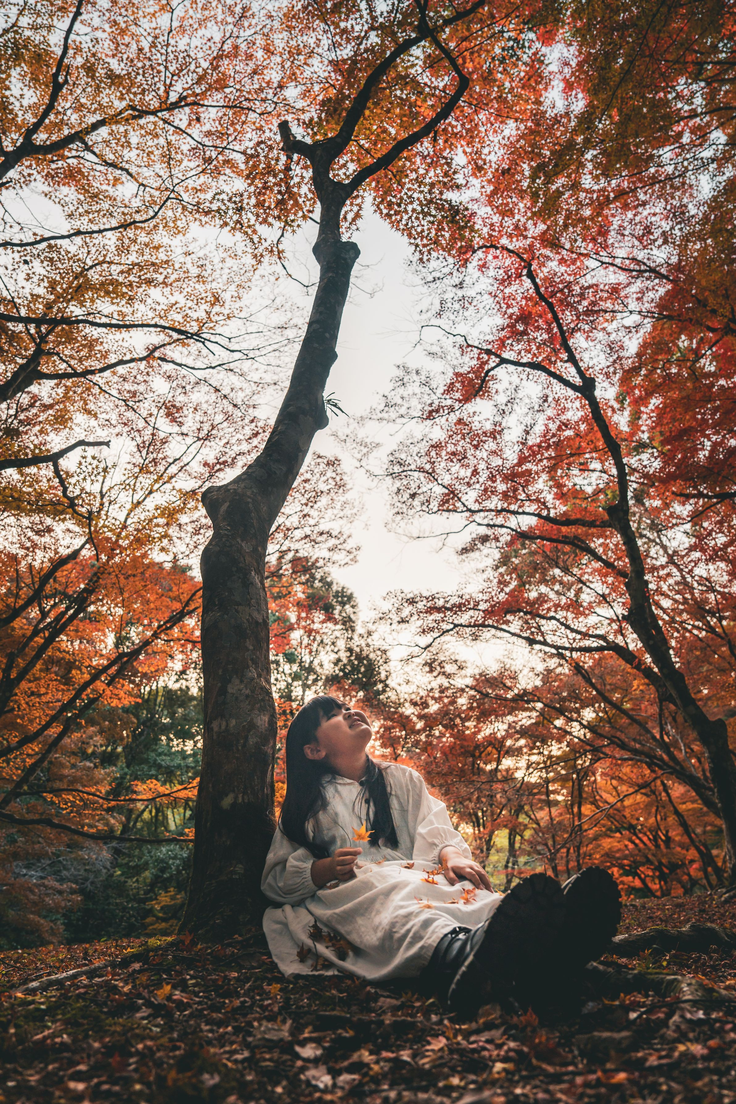 紅葉に差し込む光