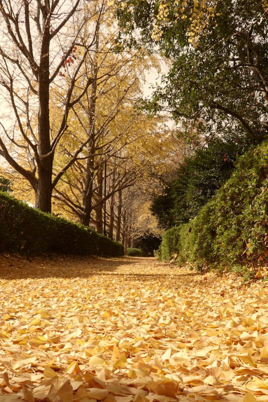 公園の銀杏が落葉し、黄色い絨毯が出来ていたので撮りました。 独特の匂いがします。