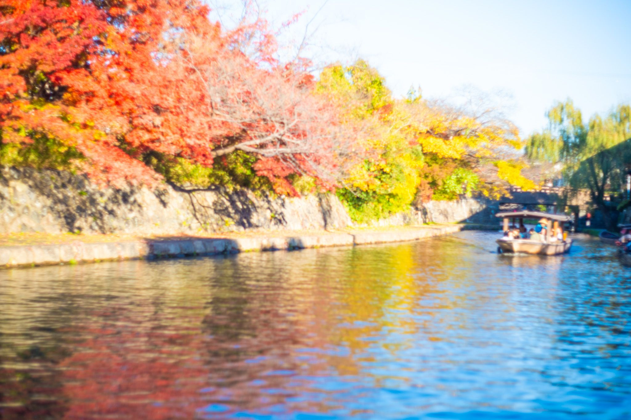 オールドレンズSuperTakumar55f1.8で撮影 木漏れ日の中の紅葉と八幡堀