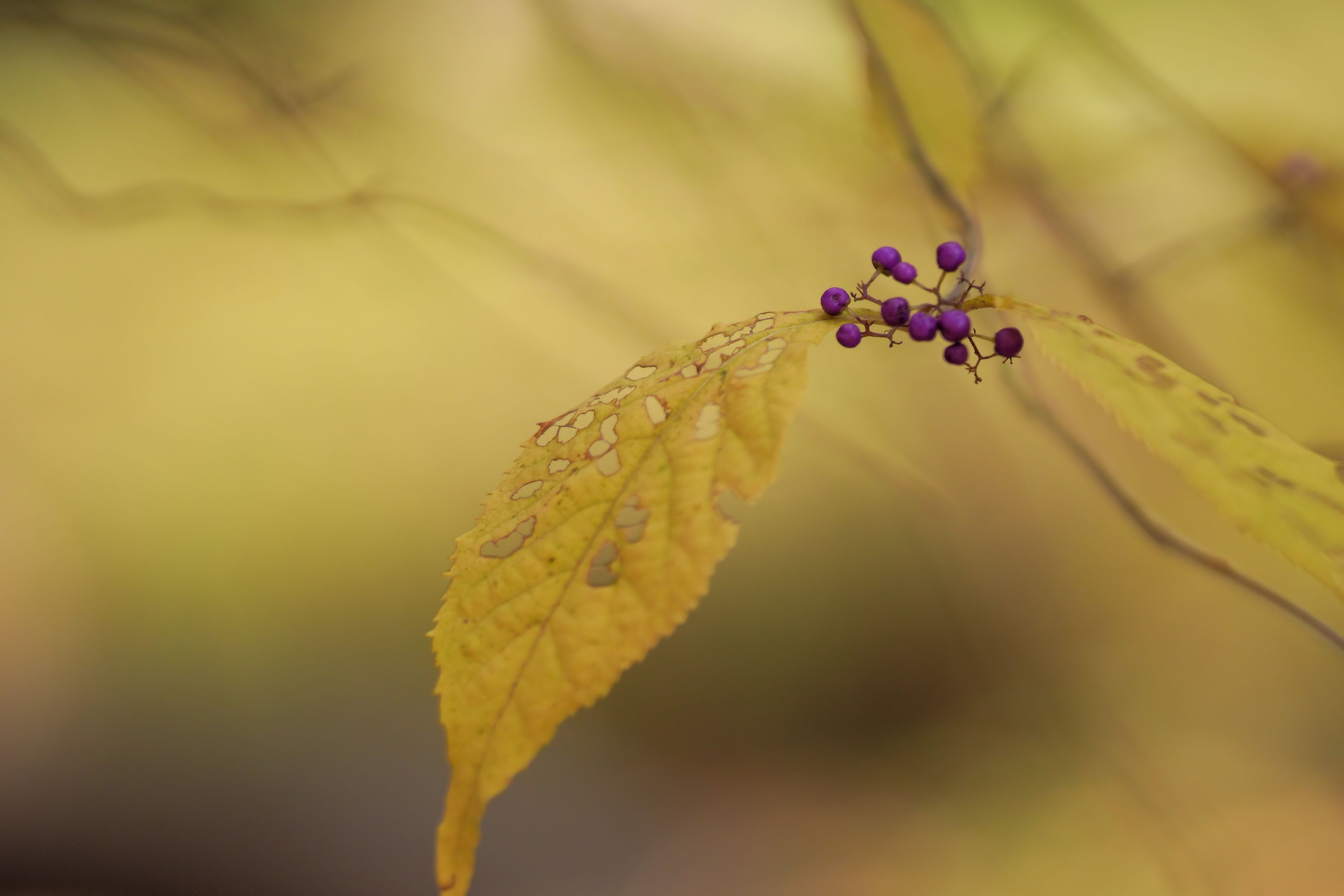 虫食いの葉と貧弱な実の紫式部