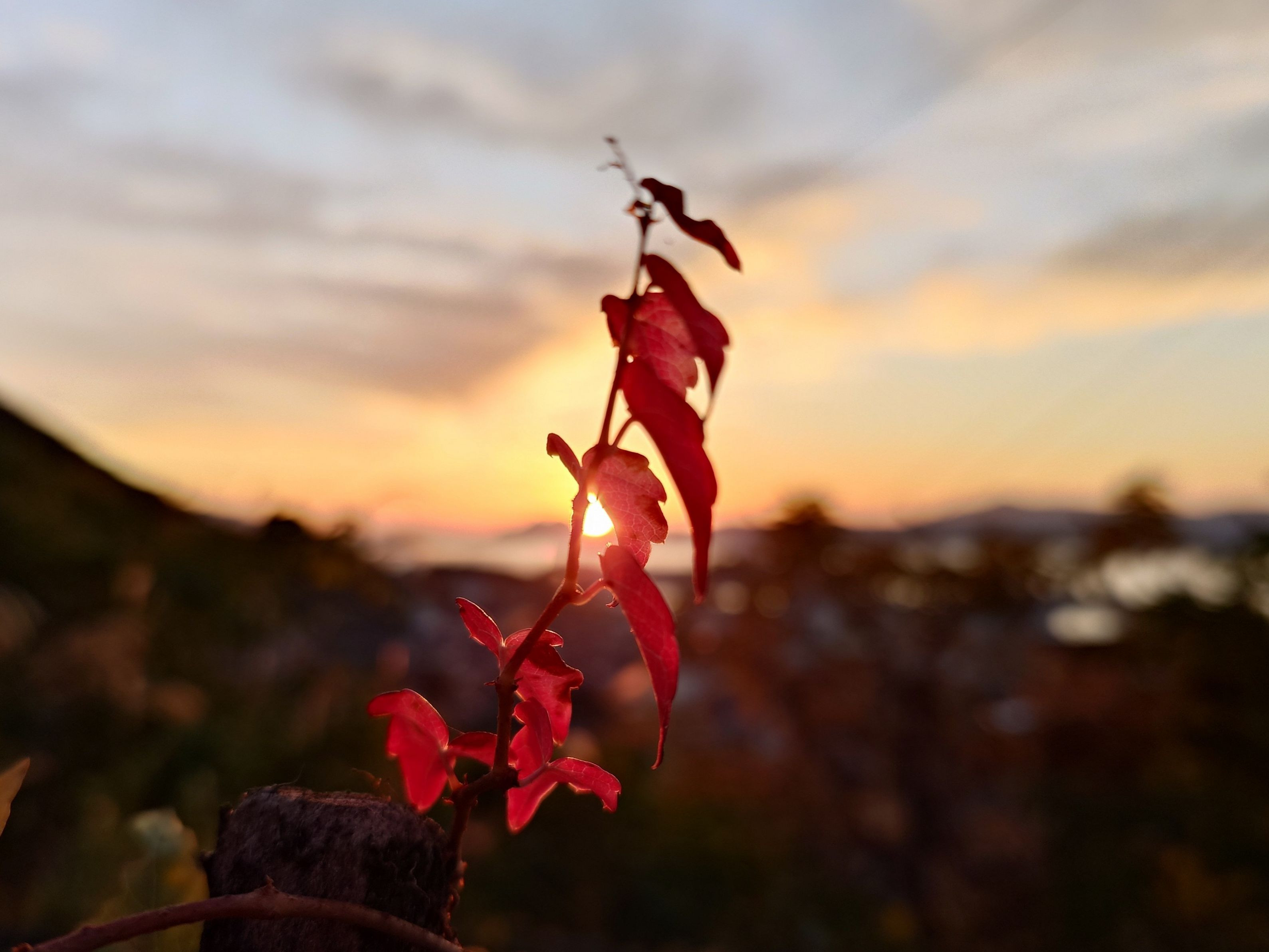 紅葉色の朝焼けと真朱の夕焼け