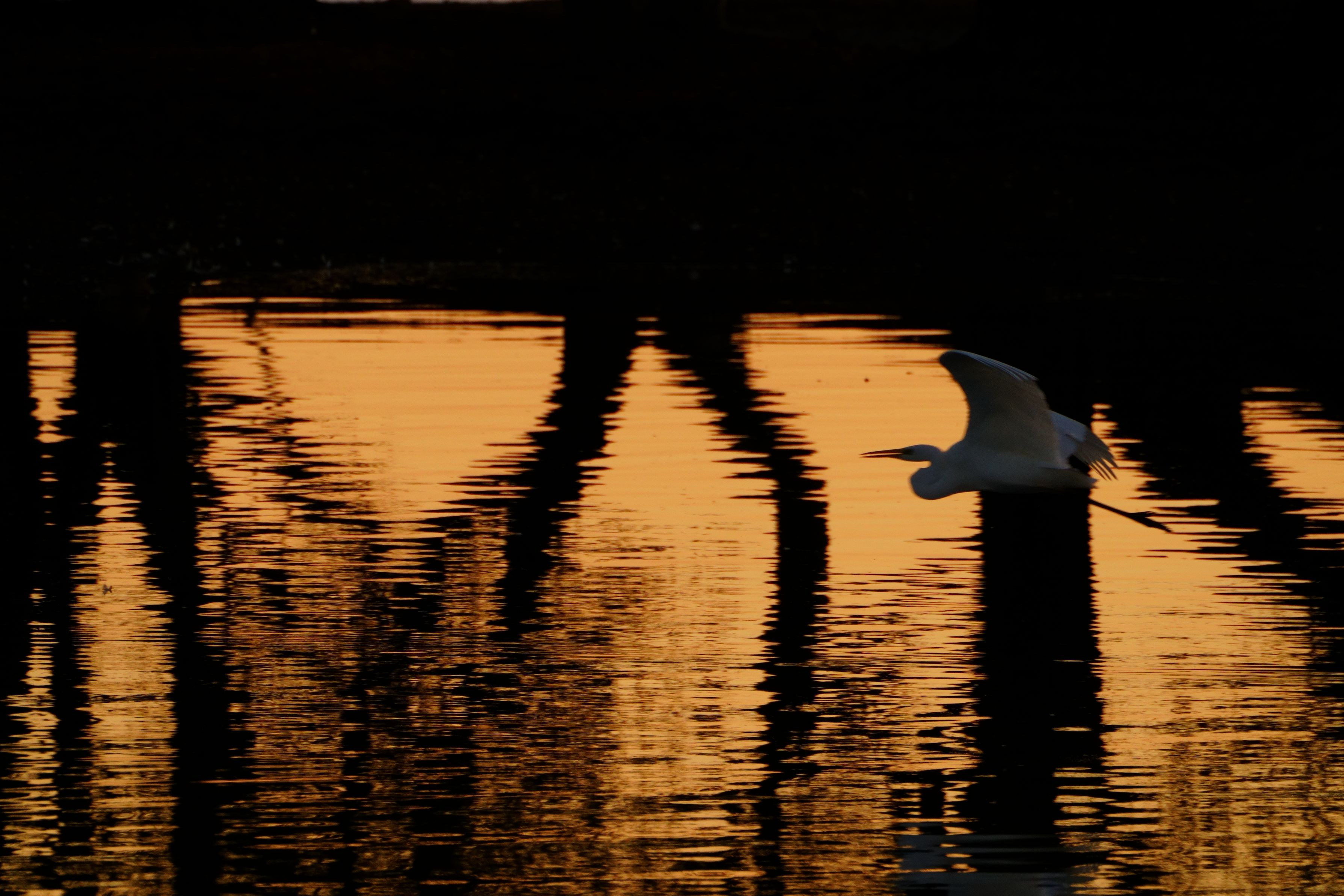 湖畔にかかる斜陽