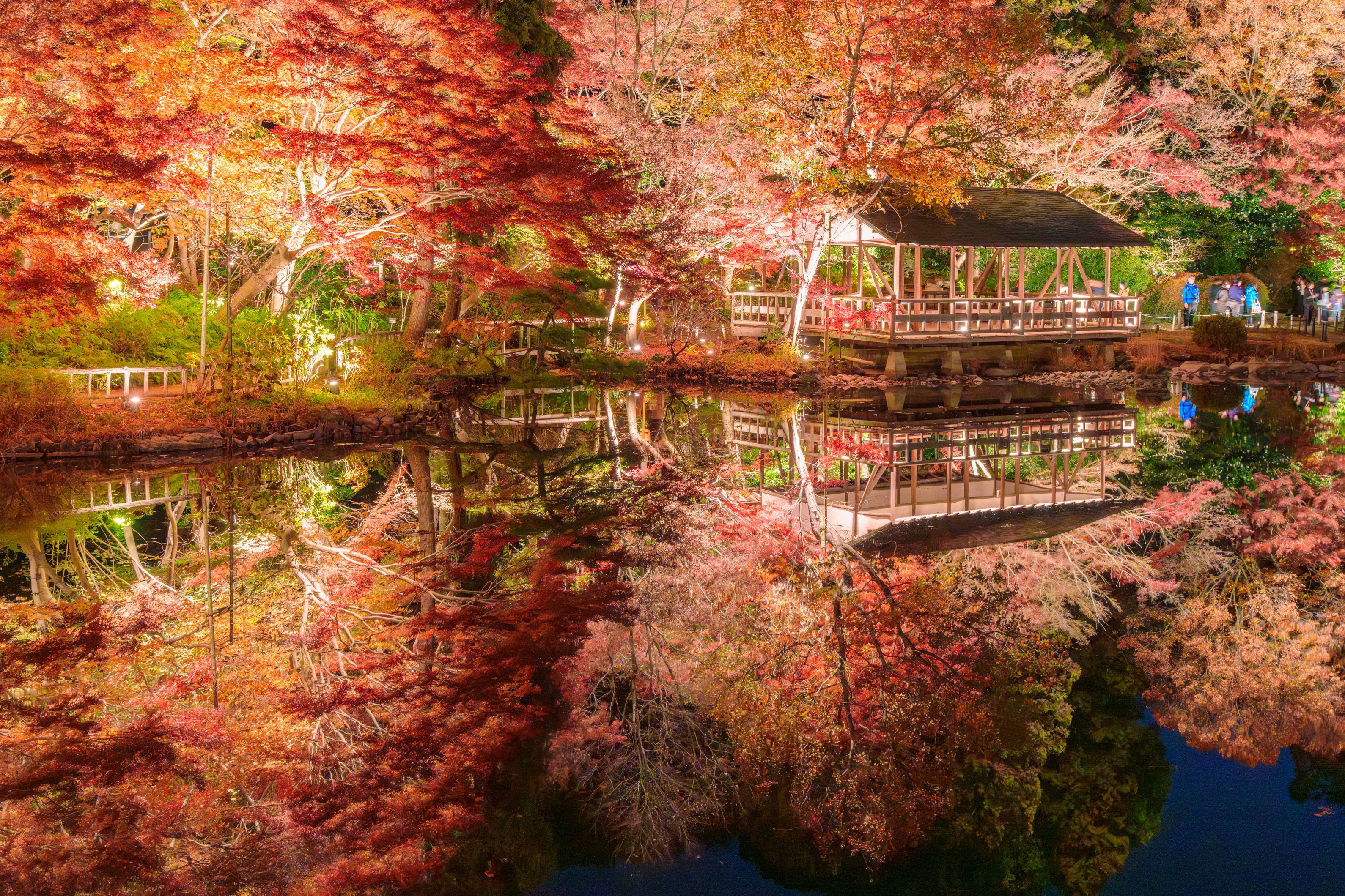 池に映る秋の魔法