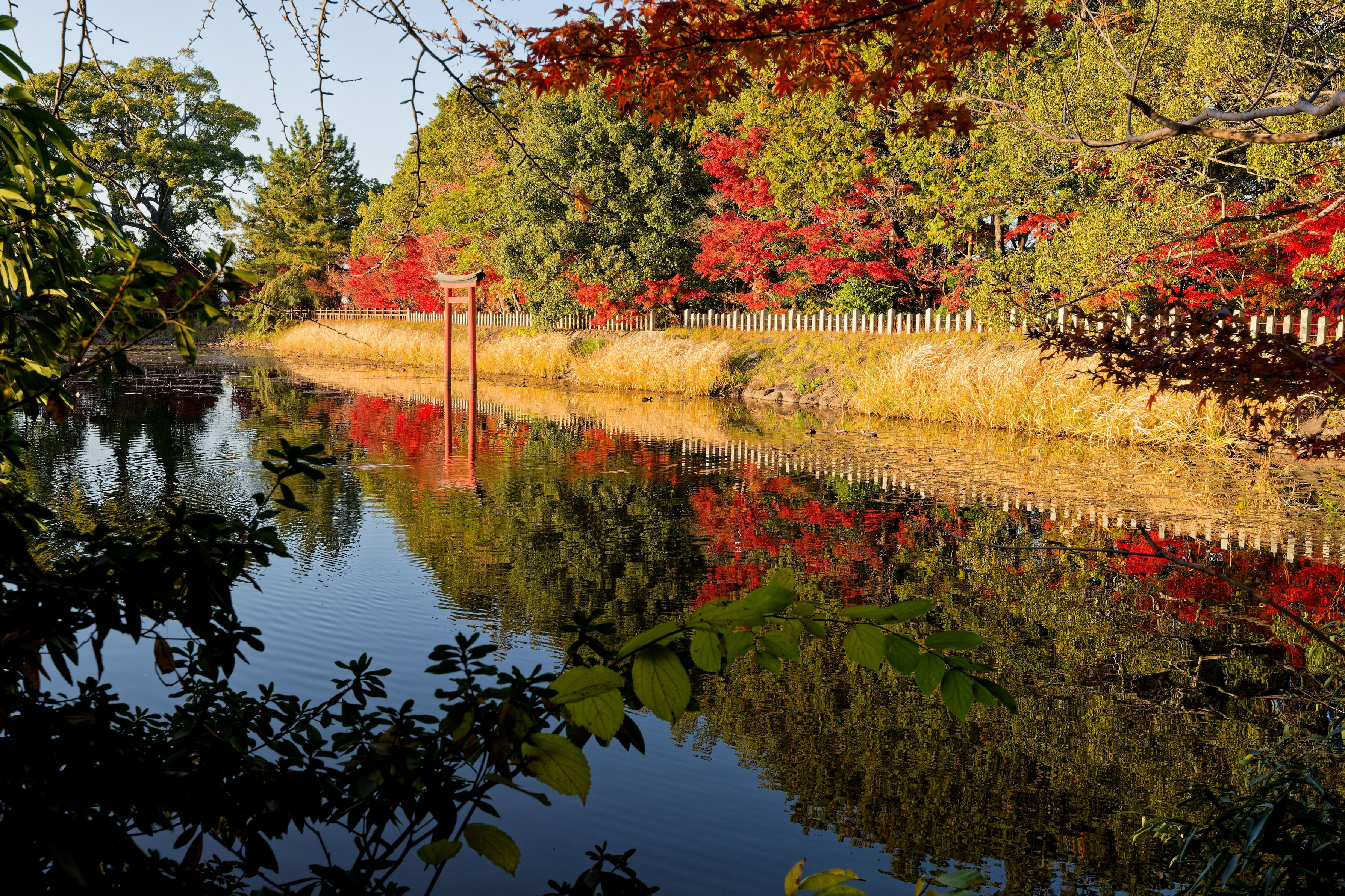 三角池(みすみいけ:古くは「御澄池」と記すこともある)を内宮、神殿を外宮とする。全国八幡宮の総本宮である宇佐神宮の祖宮といわれ、承和年間(834-848年)の創建と伝える古社である。(Wikipediaより引用)