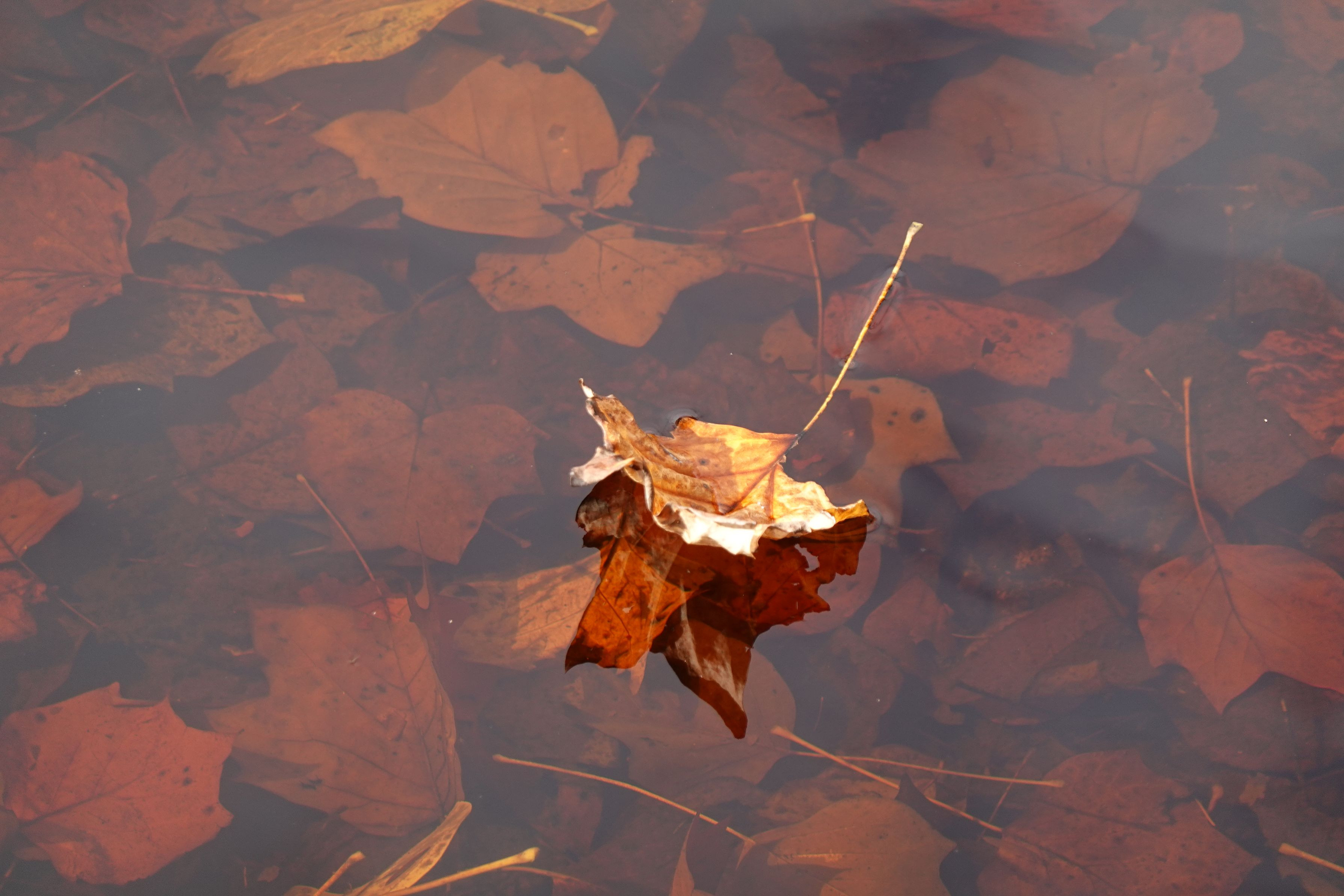 散策した公園の池はセピア色でした