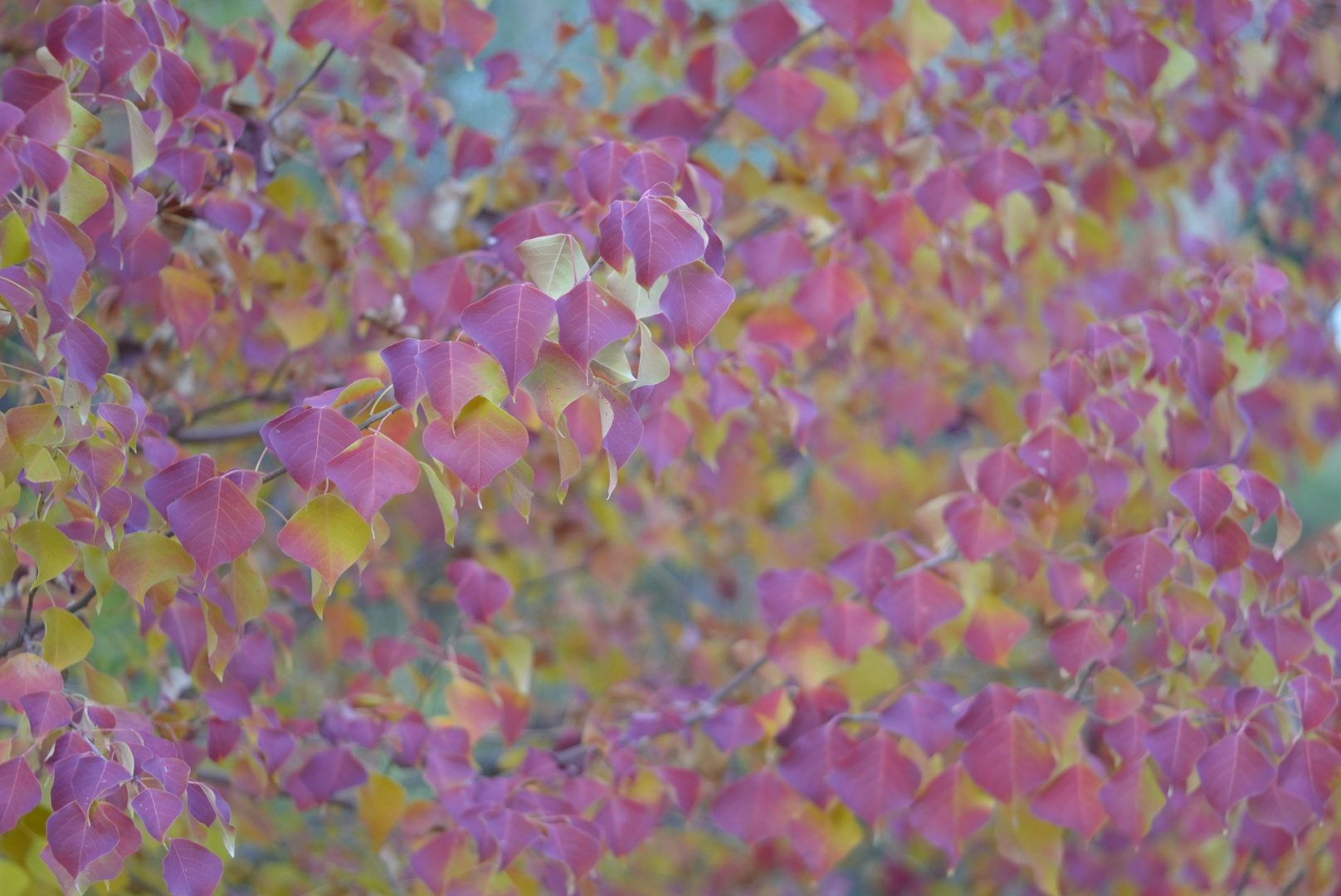 紅葉を撮影したところ紫色になってしまいました。これはこれで綺麗です。 マクロ130mm F8でマニュアル撮影しました。