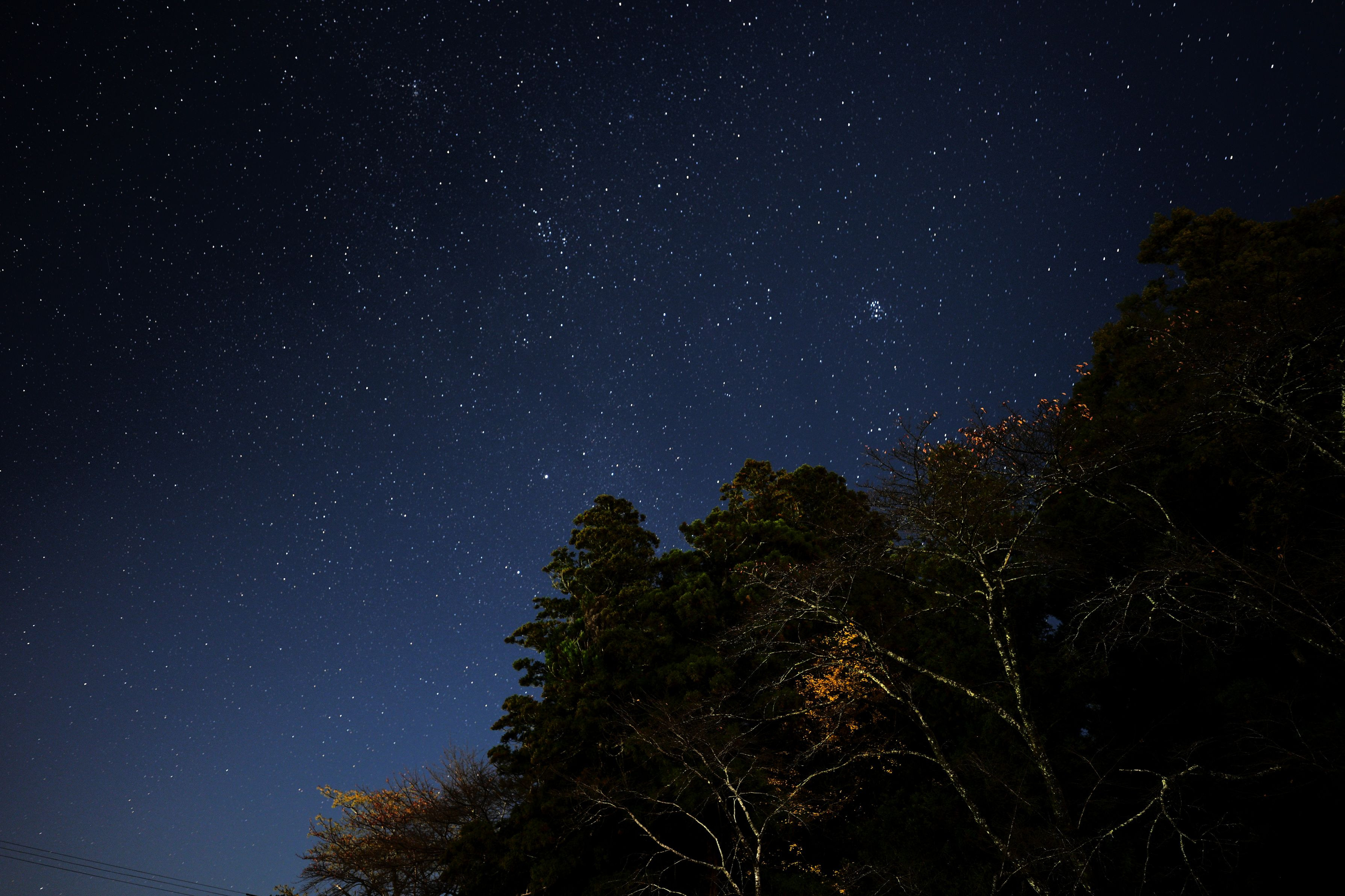 熊野本宮大社近くです。肉眼でも星の集合体が見えましたが、プレアデス星団(すばる)でしょうか。