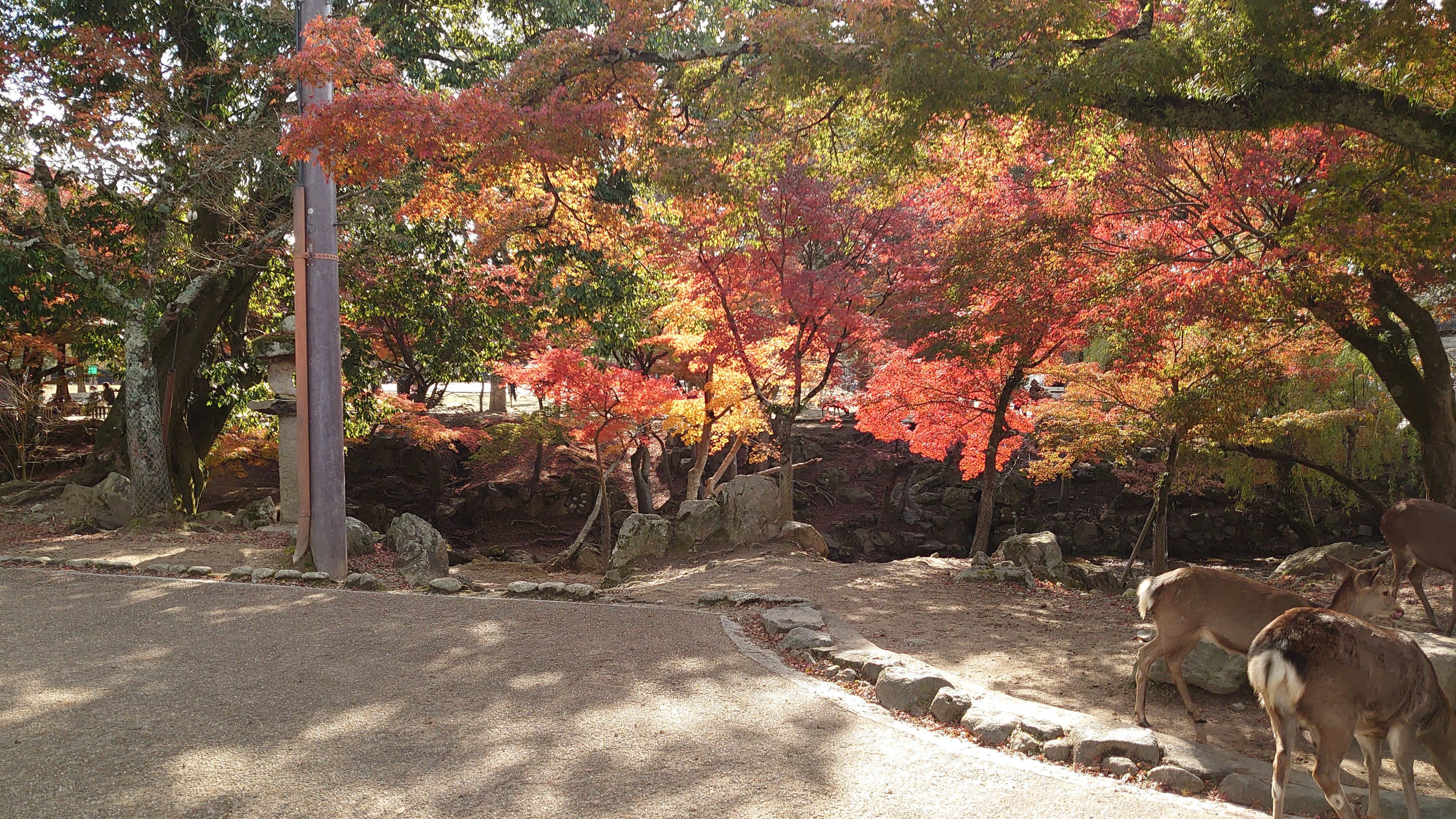 奈良公園の紅葉と鹿