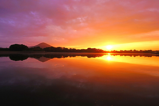 陶富士を映すため池の朝。