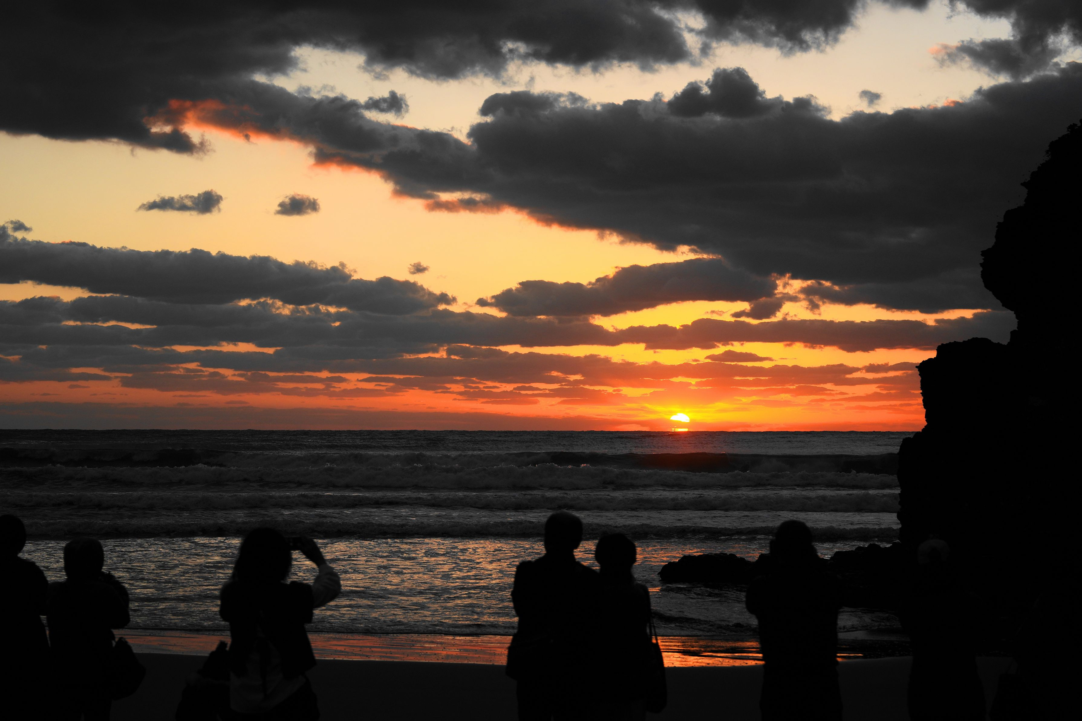 旧暦10月10日に出雲大社で神々の会議が行われていました その時、神々が最初に足を踏み入れるのがここ「稲佐の浜」 神々しい夕陽と雲と海を拝むことができました。