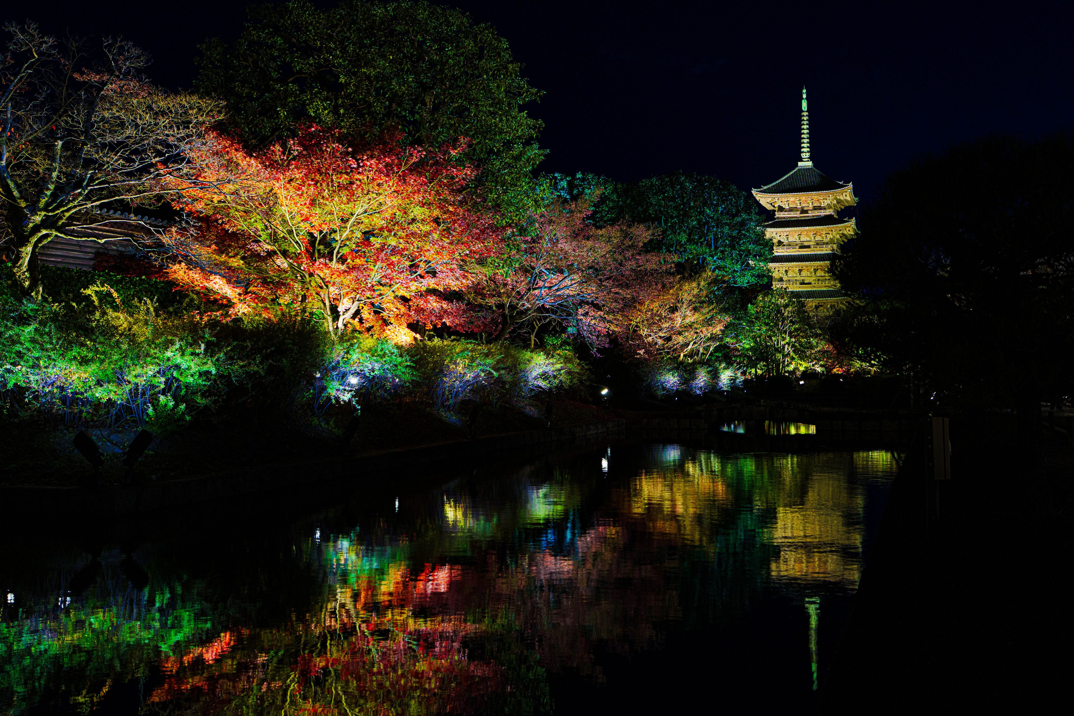 『東寺 秋のライトアップ』-リフレクション撮影-