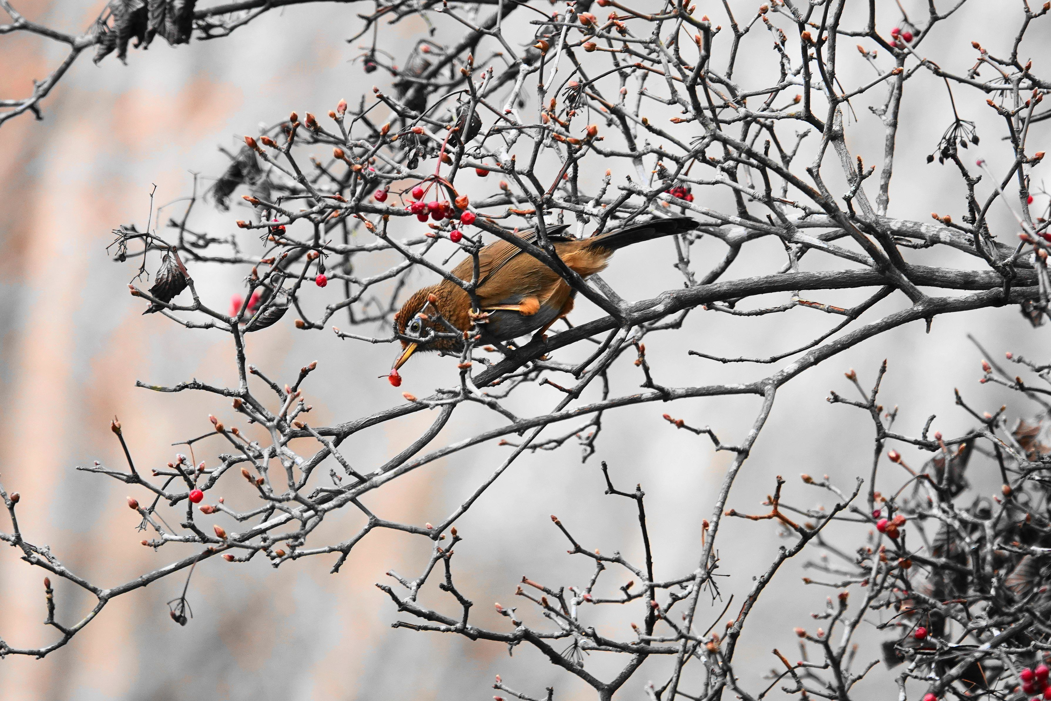 製品情報>My Sony>αcafe>深山ガマズミの実を啄む「ガビチョウ」(スーさんさん)