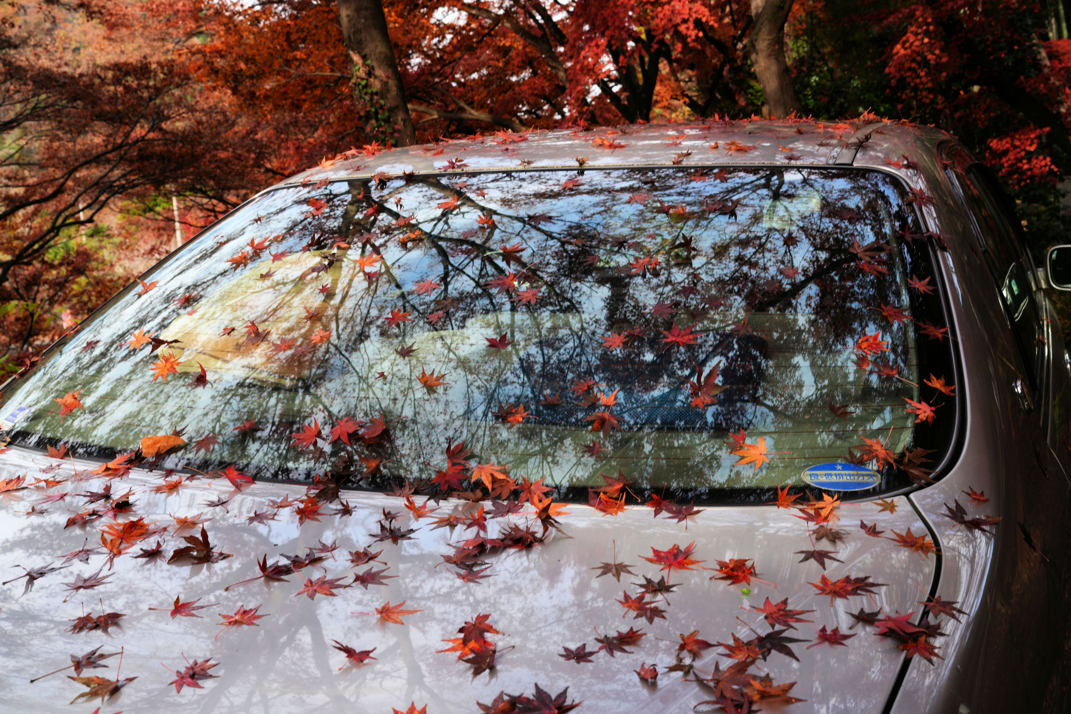 落ち葉が車にたくさん落ちていました。ラッキー!